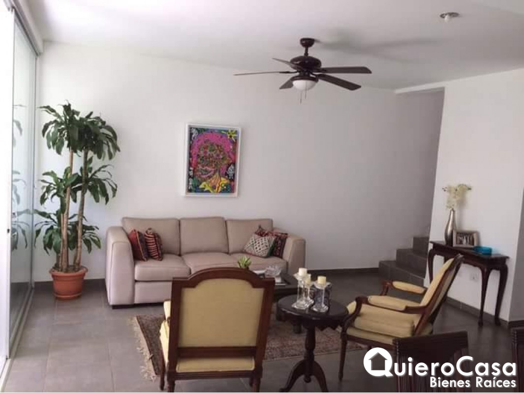 2Bonita casa cuenta con: 3 habitaciones cada una con aire acondicionado. 2.5 baños, sala comedor, terraza, habitación de servicio casa club con pool. Se encuentra en una zona segura y con fácil acceso