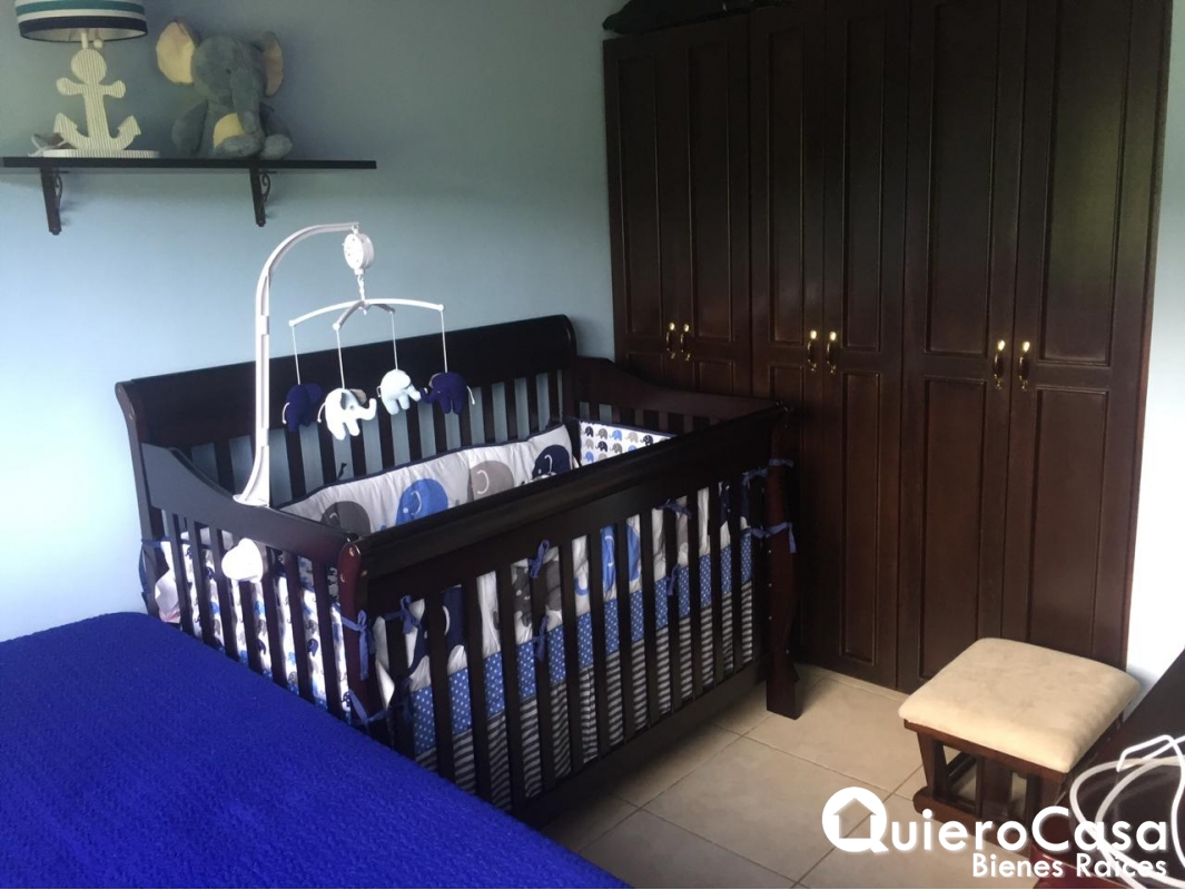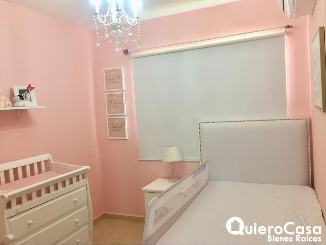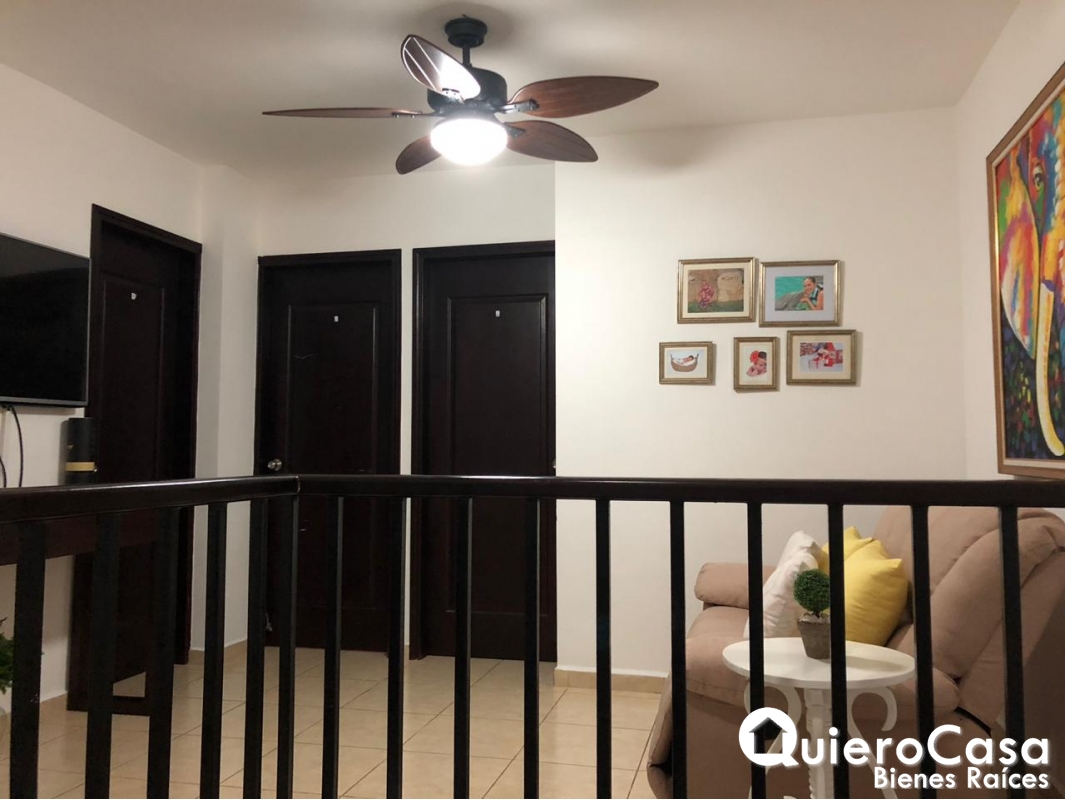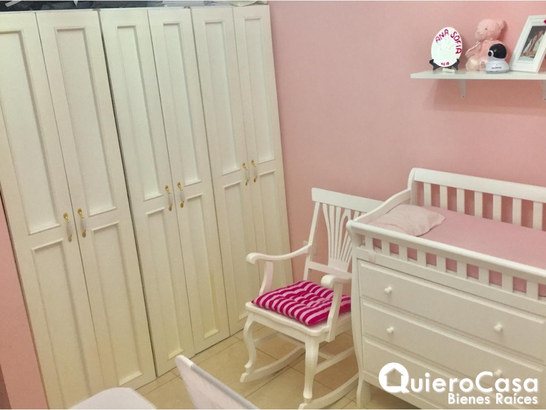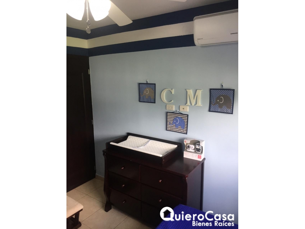 casa consta de: 3 habitaciones, las 3 habitaciones tienen closet de Madera, espejos en todos los baños, Abanicos de techo en todos los cuartos, y abanicos a control remoto en sala, cedazos en todas las ventanas, puertas exteriores y terraza. Aires acondicionados inverter de máximo ahorro, verjas corredizas en la parte exterior de la terraza y ventanas. La cocina es cerrada con área de lavado, cuarto y baño de servicio. Cableado o espera para planta eléctrica, estacionamiento para 2 vehículos.