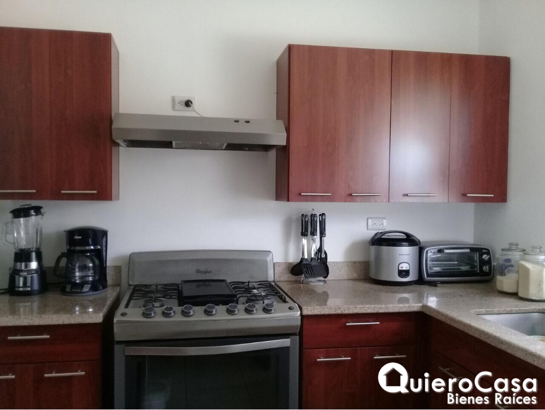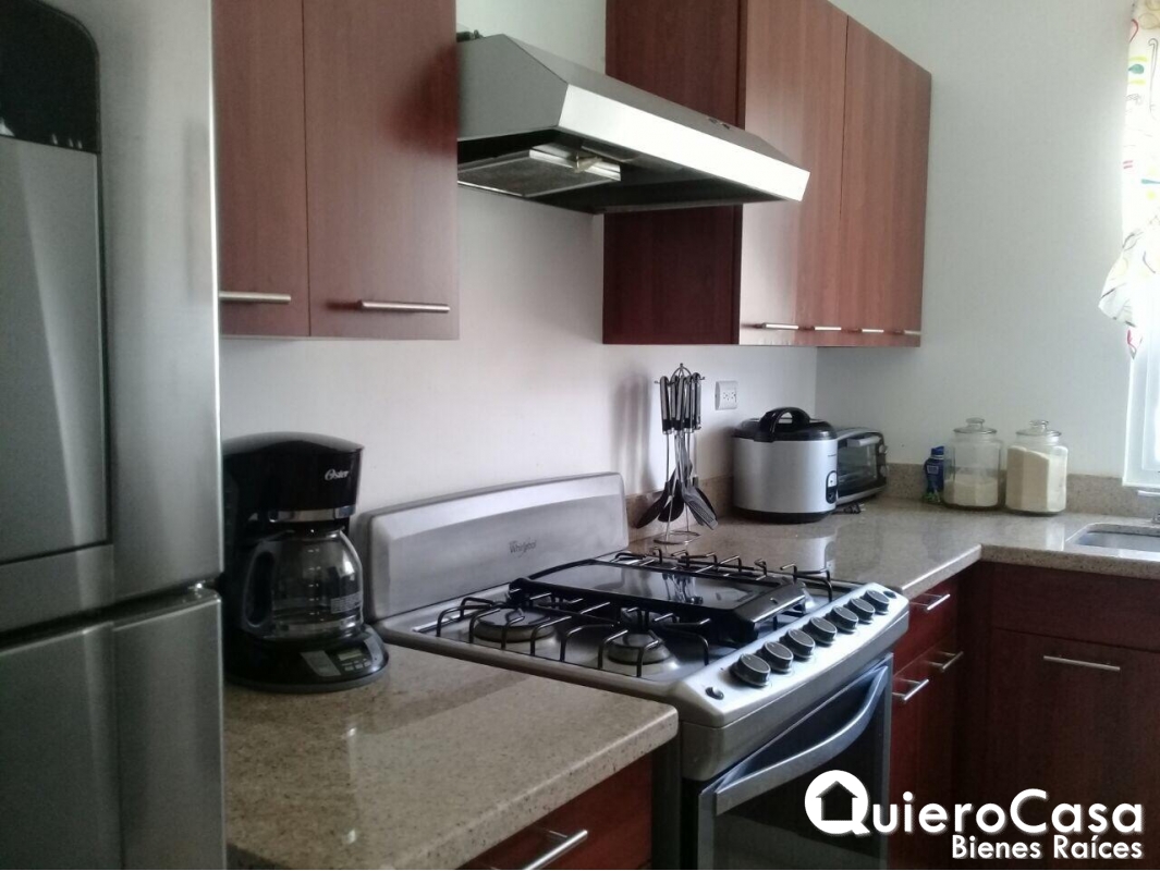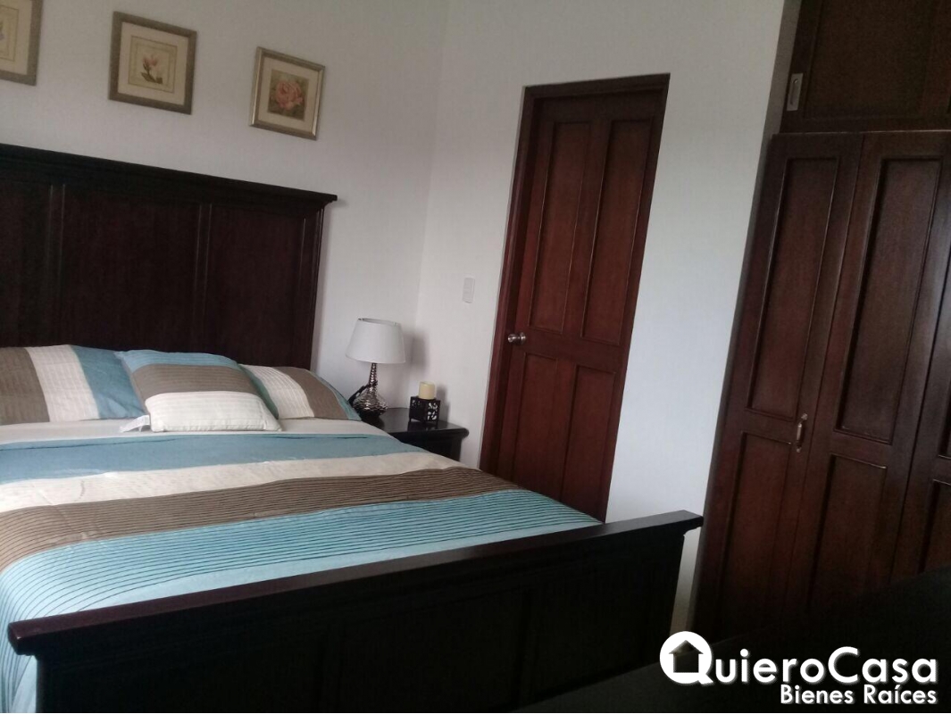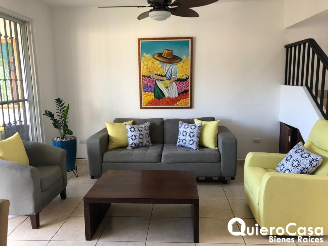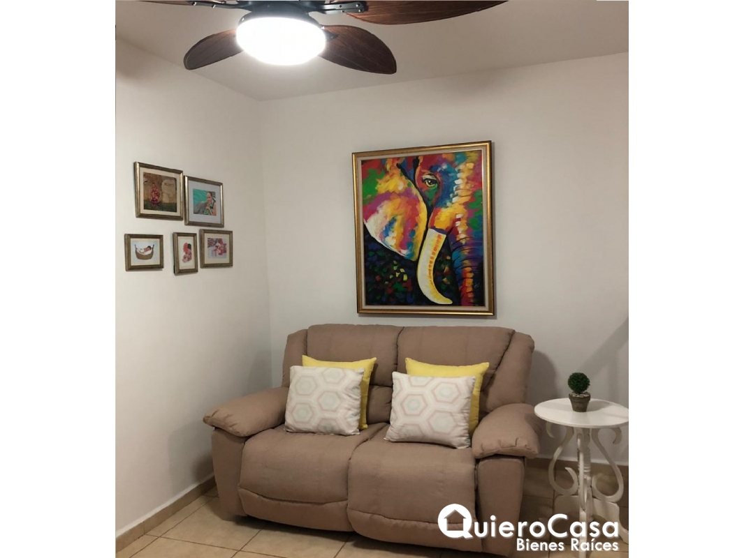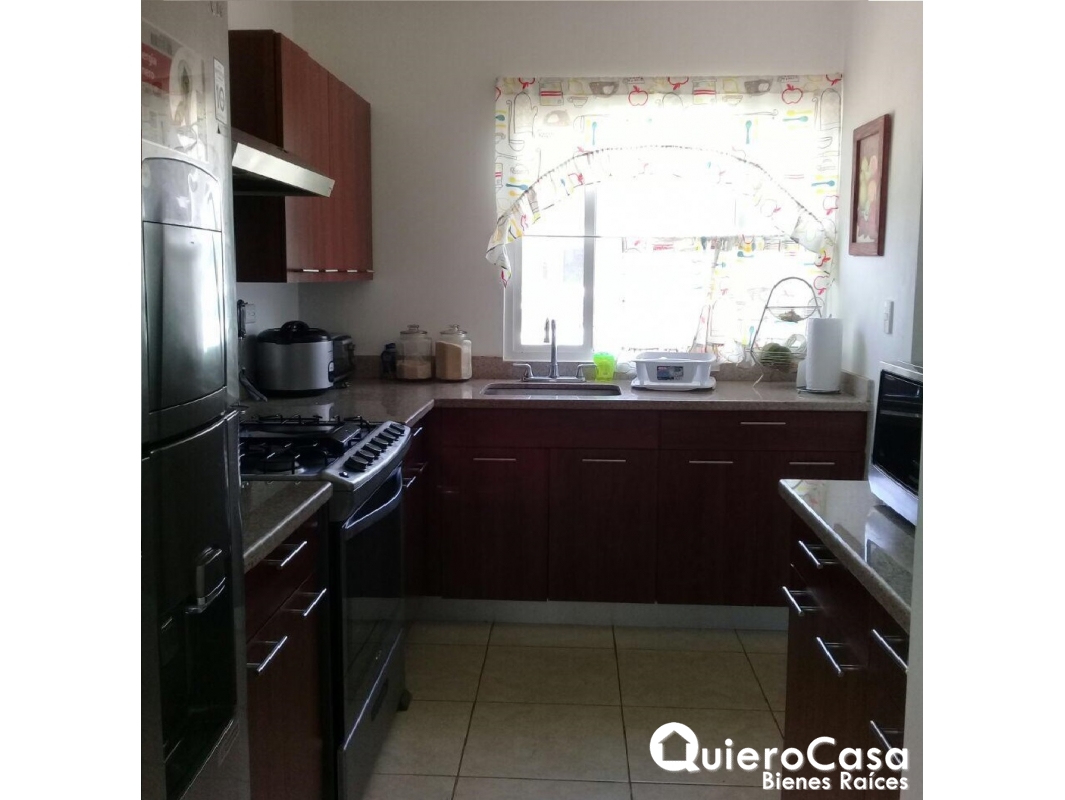 casa consta de: 3 habitaciones, las 3 habitaciones tienen closet de Madera, espejos en todos los baños, Abanicos de techo en todos los cuartos, y abanicos a control remoto en sala, cedazos en todas las ventanas, puertas exteriores y terraza. Aires acondicionados inverter de máximo ahorro, verjas corredizas en la parte exterior de la terraza y ventanas. La cocina es cerrada con área de lavado, cuarto y baño de servicio. Cableado o espera para planta eléctrica, estacionamiento para 2 vehículos.