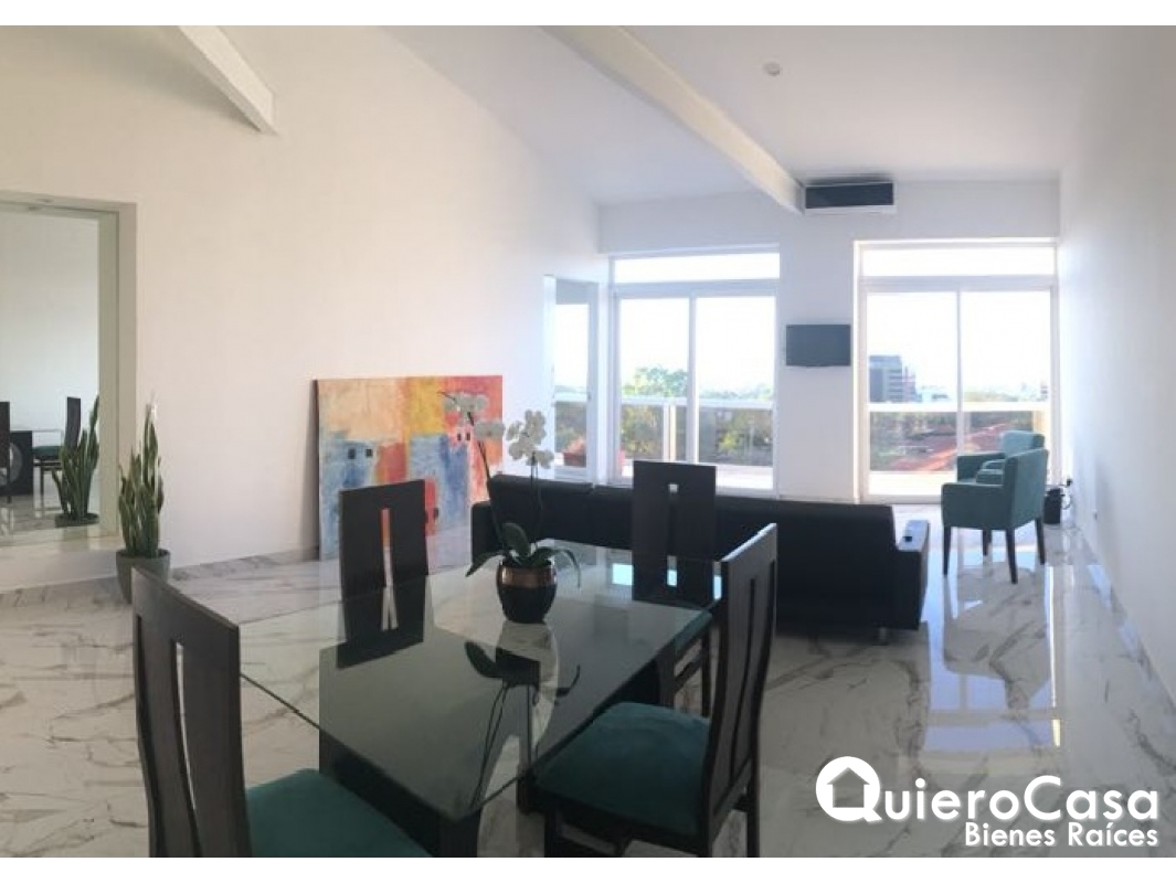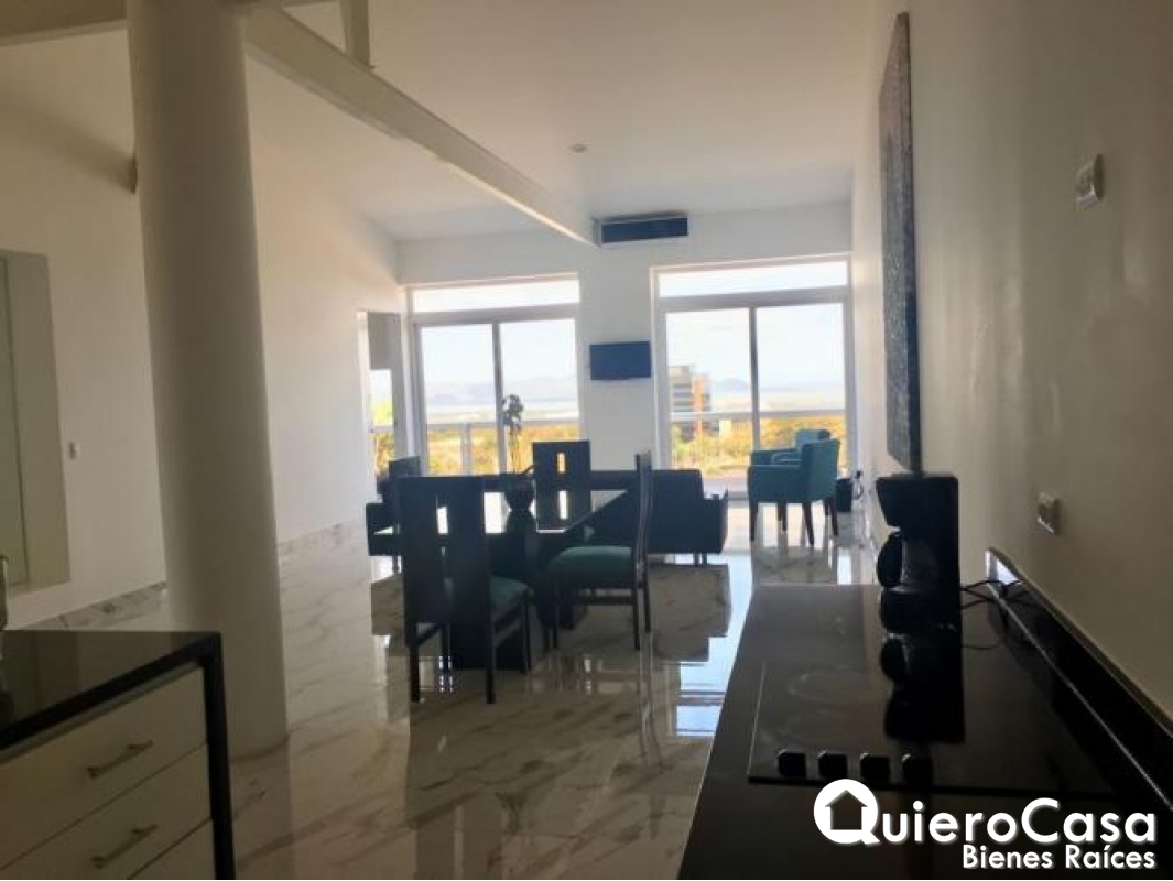 2Se renta precioso apartamento en excelente ubicación, con finos acabados y una espectacular vista al lago.
