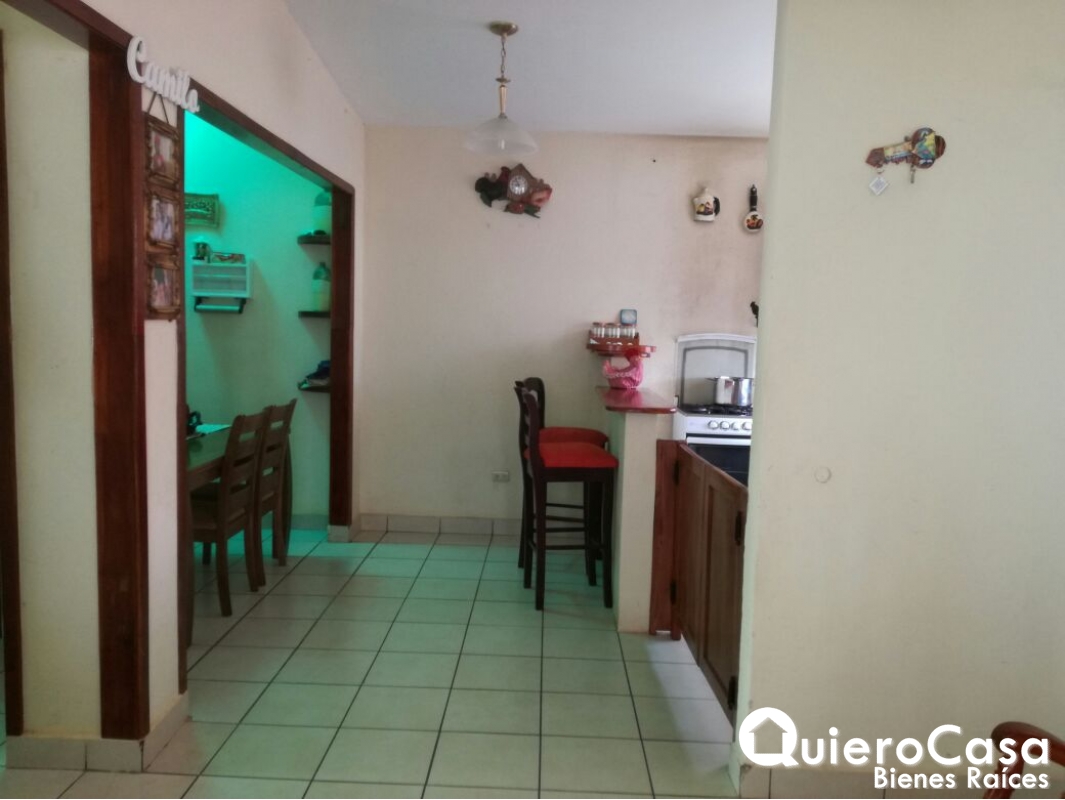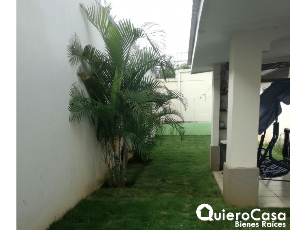 La casa consta habitación principal con aire acondicionado, terraza ampliada, terreno engramado con espacio para construir, muros y verjas. Esta propiedad tiene las siguientes características: Sala, Comedor, Cocina, Área para Desayunador, Aire Acondicionado, Patio, Parque Infantíl, En Condominio, Cerca de Escuela, Cerca de Hospitales, Seguridad 24 Horas, Agua Potable, Servicios Eléctricos, Aguas Negras, Acceso Asfaltado.