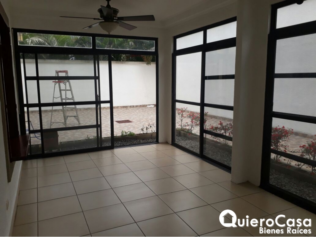 2Bonita casa en venta dentro de condominio, con seguridad las 24 horas. El condominio cuenta con parque infantil y casa club con piscina.. Esta propiedad tiene las siguientes características: Sala, Comedor, Cocina, Área para Desayunador, Walk in Closet, Habitación de Servicio con su Baño, Salón de Fiesta, Lavandería Interna, Aire Acondicionado, Tanque de Agua, Área Social, Área de Barbacoa, Piscina Comunal, Parque Infantíl, Cerca de Escuela, Cerca de Hospitales, Calle Sin Salida.
