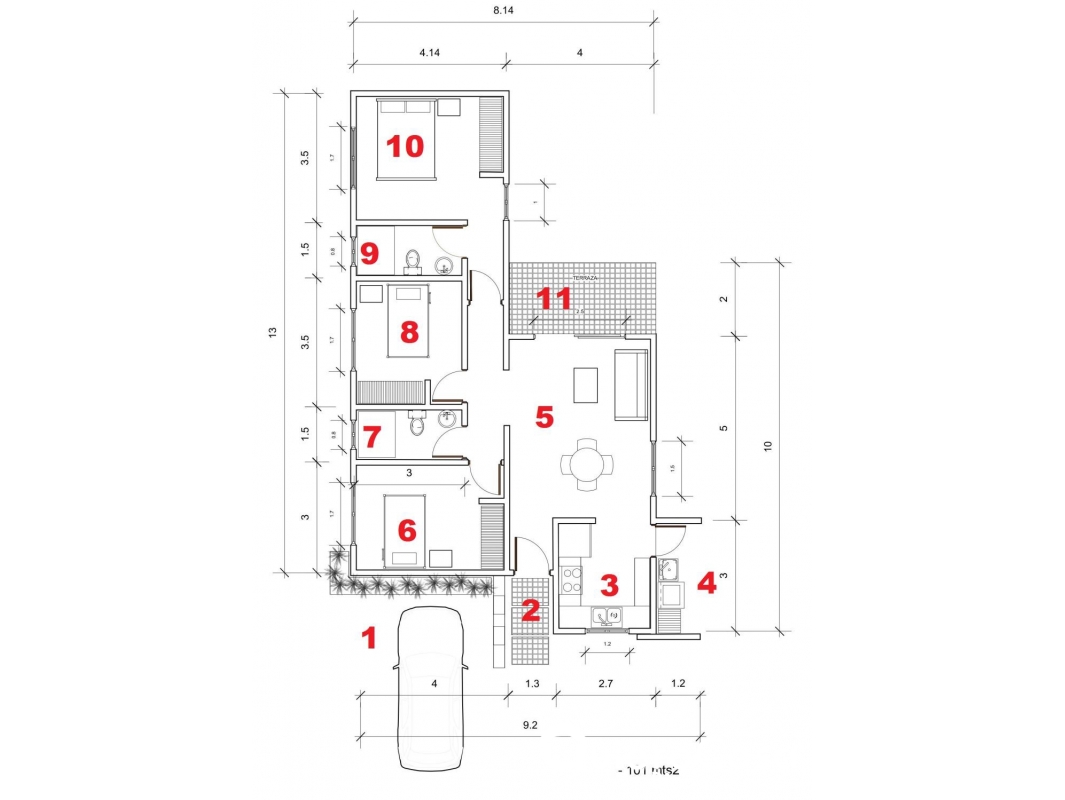 Modelo Cedro de 101 mts2, que consta de 3 habitaciones, 2 baños, sala, comedor, cocina, área de lavado, patio, terraza y estacionamiento para 2 vehículos.