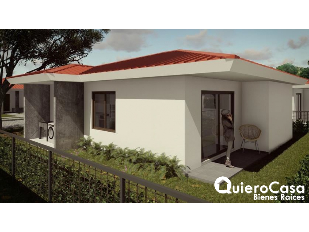 Modelo Pochote de 75 mts2, que consta de 2 habitaciones, 1 baño, sala, comedor, cocina, patio, área de lavado, terraza y estacionamiento para 2 vehículos.