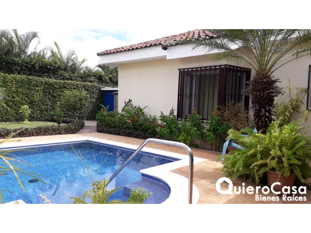 Casa cuenta con amplios espacios, bien construida, cuenta con iluminación propia. La casa consta de 4 cómodas habitaciones, 3.5 baños, sala, área de comedor, amplia y moderna cocina, dormitorio de servicio con su baño, área de lavado, aires acondicionados, abanicos de techo, cortinas, terraza amplia, piscina, bodega, y estacionamiento para 3 vehículos.