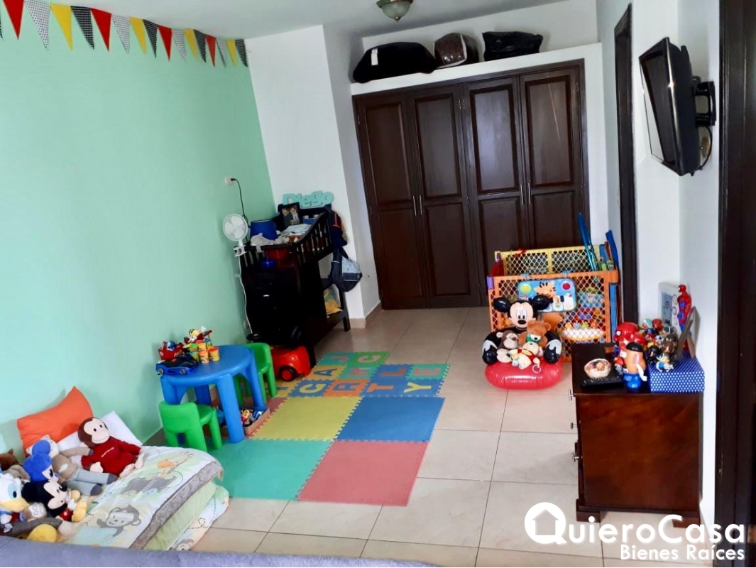 Segundo piso: 3 Dormitorios: Dormitorio principal con aire acondicionado, baño, walk in Closet y balcón. Segundo cuarto amplio con aire acondicionado y closet. Tercer cuarto con aire acondicionado y closet, ambas habitaciones con baño compartido, sala de estar y balcón.