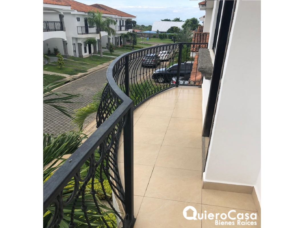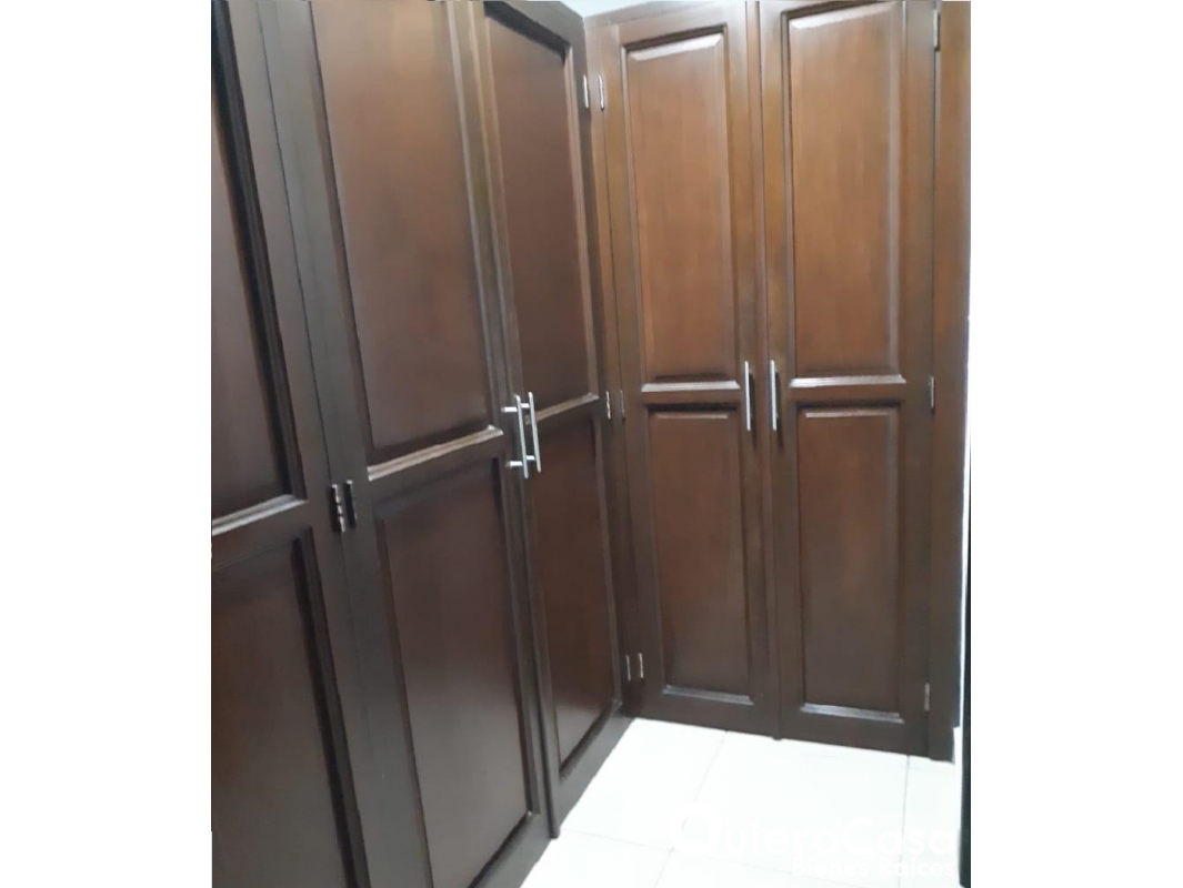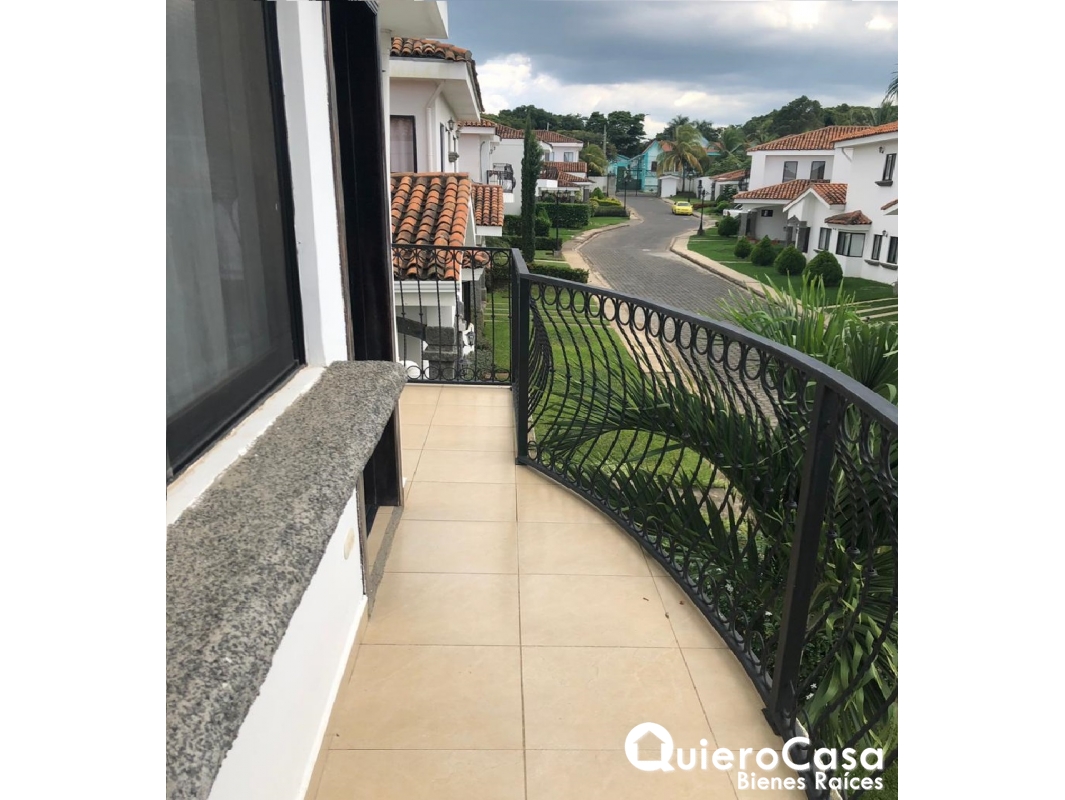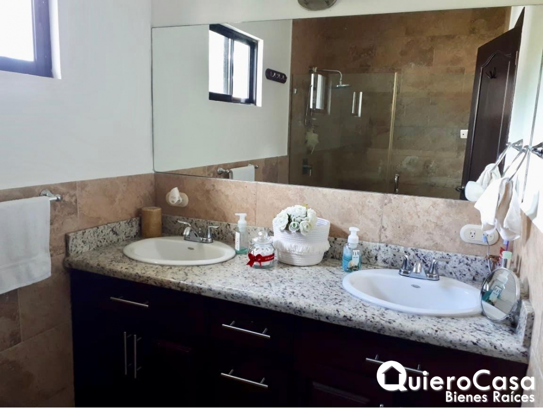 Cuenta con cochera bajo techo para dos vehículos, agua caliente y bomba de agua.. Esta propiedad tiene las siguientes características: Sala, Comedor, Cocina, Área para Desayunador, Walk in Closet, Depósito, Habitación de Servicio con su Baño, Aire Acondicionado, Agua Caliente, Tanque de Agua, Patio, En Condominio, Cerca de Escuela, Cerca de Hospitales, Seguridad 24 Horas, Calle Sin Salida.