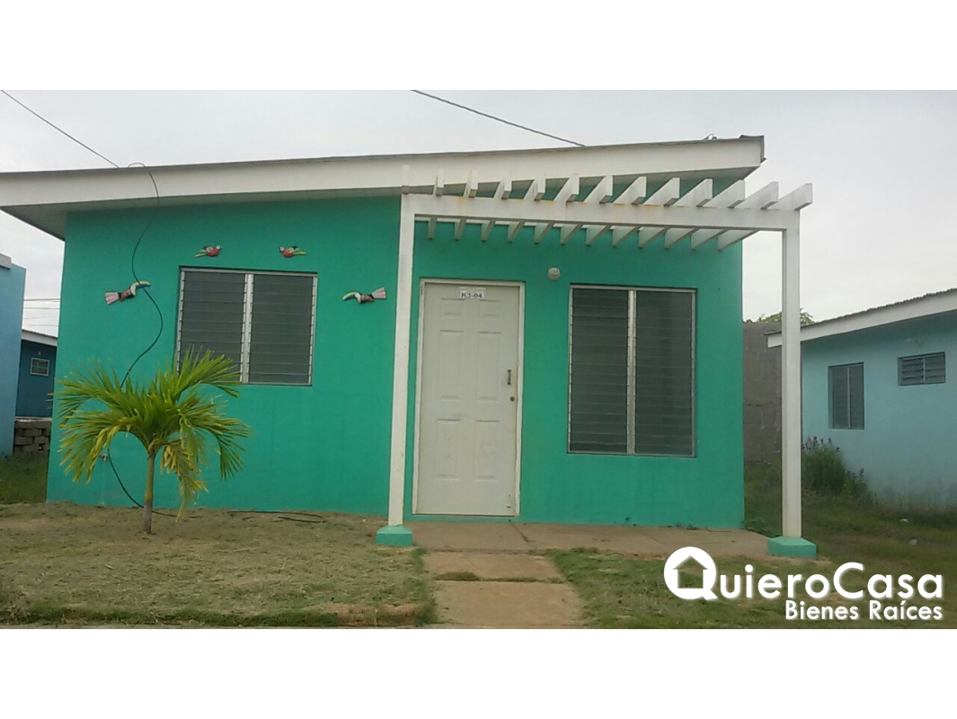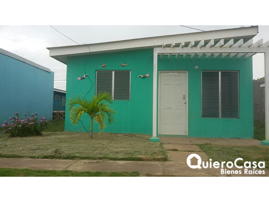 Consta de 2 dormitorios, 1 baño, sala, comedor, cocina, cubierta de techo lamina de zinc sobre estructura metálica, cielo falso de pvc sobre estructura de aluminio, porche con pérgolas metálicas, sistema constructivo concreto reforzado, ventana de aluminio y vidrio tipo celosía, piso de cerámica, puertas metálicas externas y puertas de fibrán internas, mueble pantry y lavandero,
