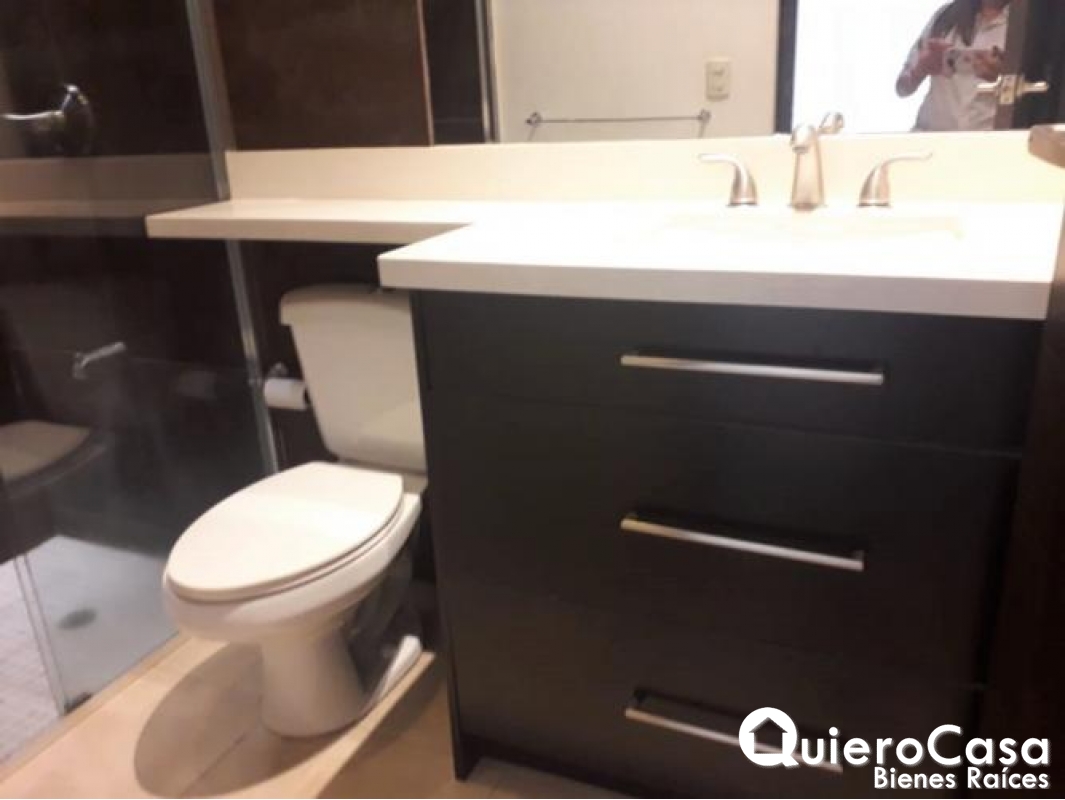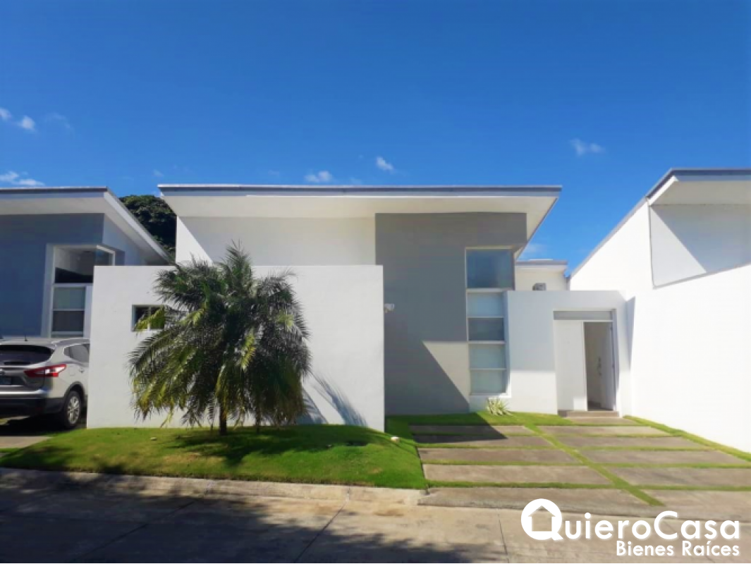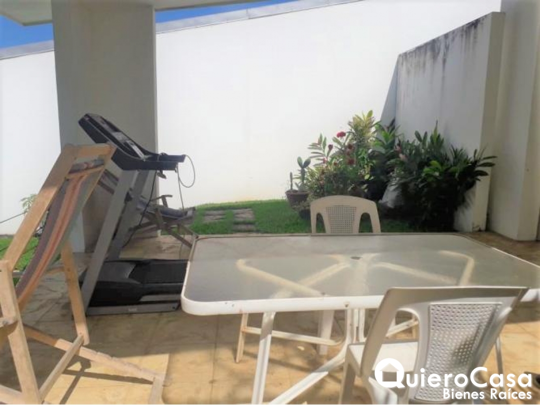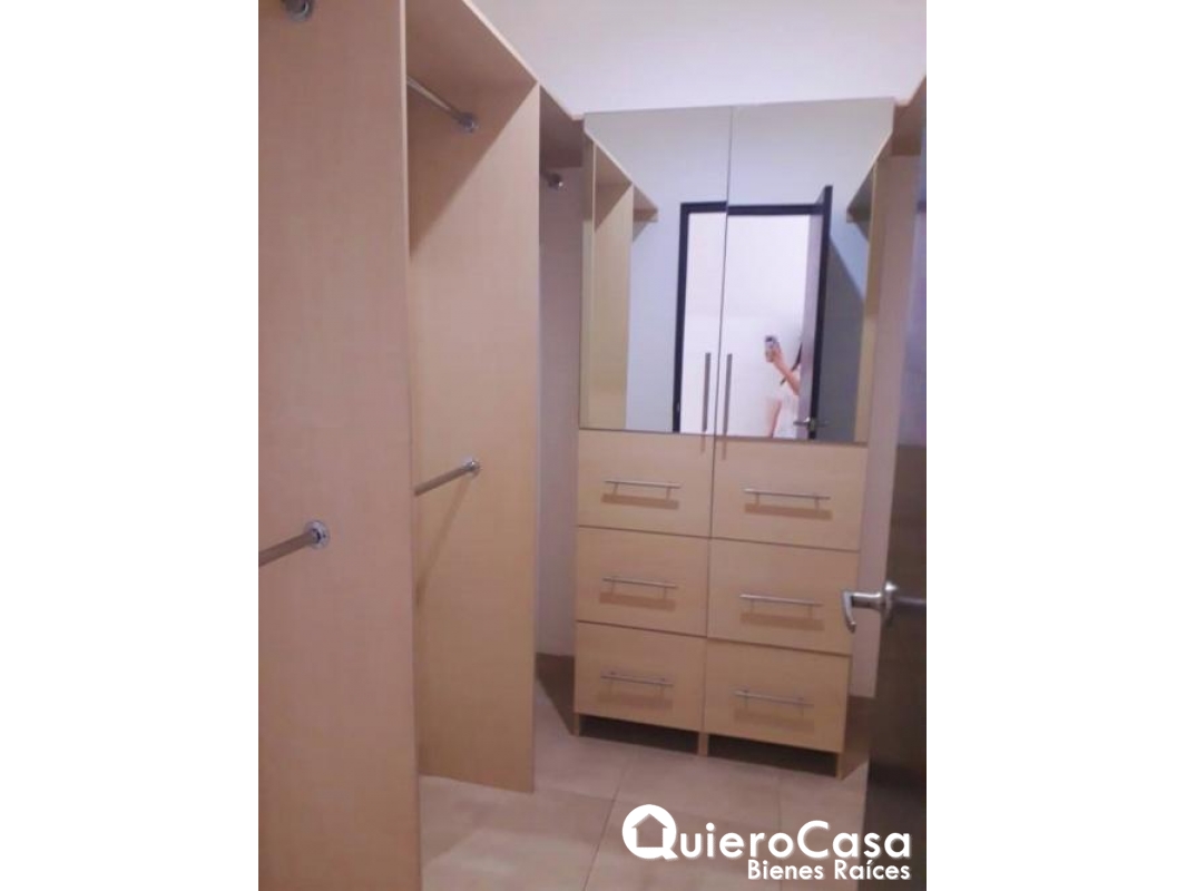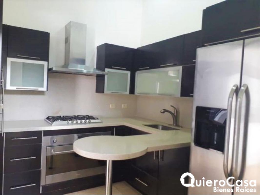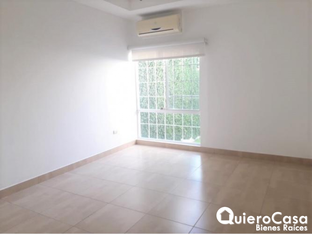 la propiedad cuenta con 5 aires acondicionado. Esta propiedad tiene las siguientes características: Sala, Comedor, Cocina, Área para Desayunador, Walk in Closet, Lavandería Interna, Garaje de Techado, Aire Acondicionado, Área Social, Piscina Comunal, Línea Blanca, En Condominio, Cerca de Escuela, Cerca de Hospitales, Seguridad 24 Horas.