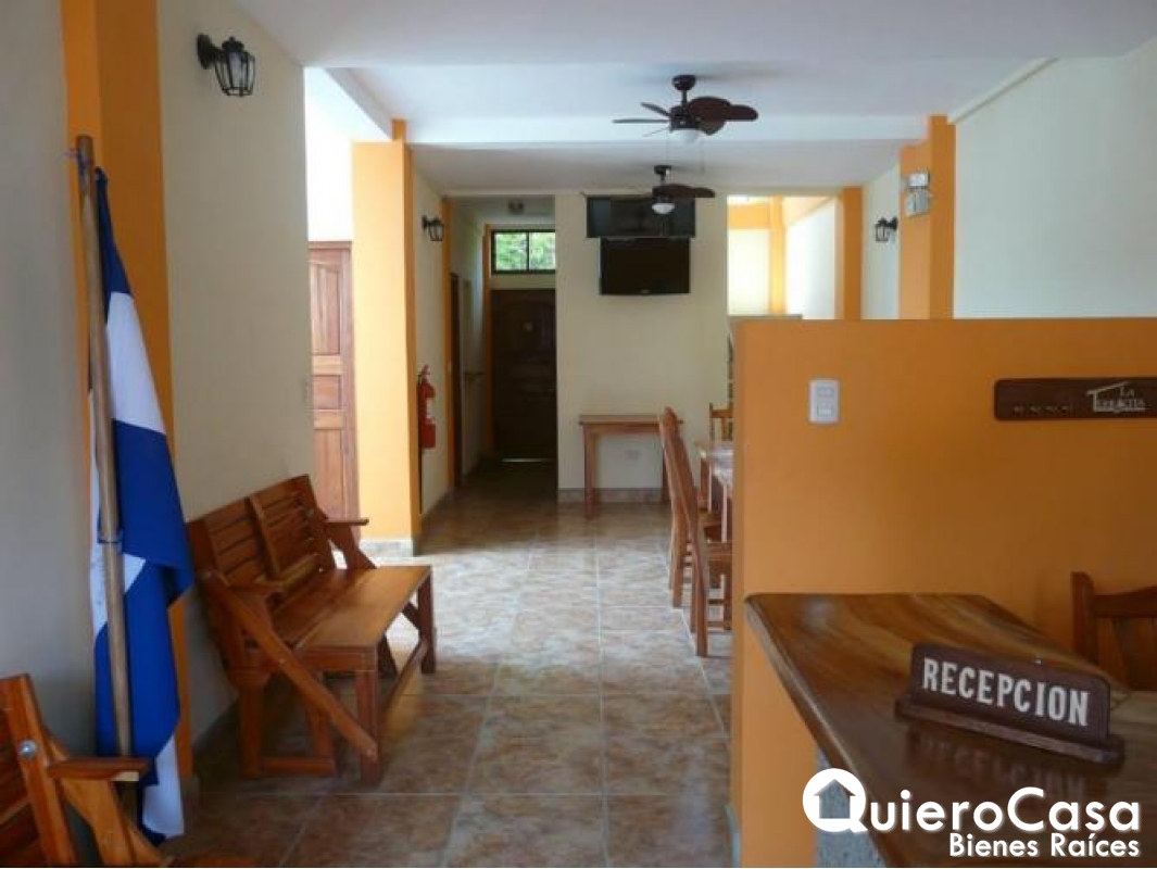 El establecimiento cuenta con 7 habitaciones totalmente equipadas con aire acondicionado y baño privado. Está ubicado en la calle principal de San Juan del Sur, a una cuadra de la playa. El edificio se puede utilizar como hotel, hostal u oficina.