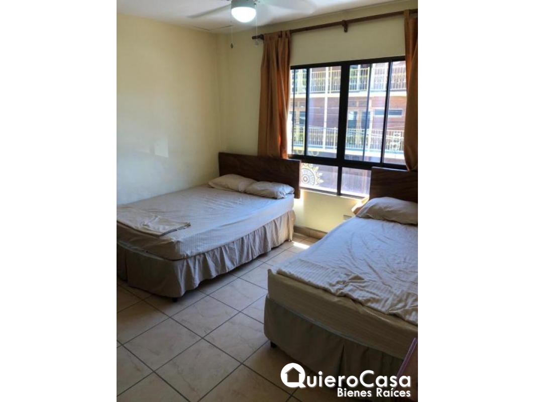 Primer piso: entrada y sala de estar con un área abierta al centro para ventilación, dos habitaciones, una habitación que da a la calle donde caben dos camas dobles, con AA y despensa; una habitación para una cama individual, cocina, medio baño, sala eléctrica con dos paneles, uno para circuitos de 110 voltios y otro para circuitos de 220 voltios (aires acondicionados y duchas en baños. Área de lavandería exterior y almacenamiento debajo de las escaleras hacia el segundo piso.