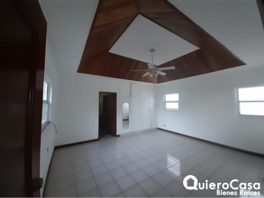 4Espaciosa casa en renta en el Mirador de Santo Domingo, zona segura, centrica y silenciosa, cerca de centro de compras, escuelas y hospitales. Cuenta con amplia terraza. Esta propiedad tiene las siguientes características: Sala, Comedor, Cocina, Área para Desayunador, Walk in Closet, Habitación de Servicio con su Baño, Área Social, Patio.