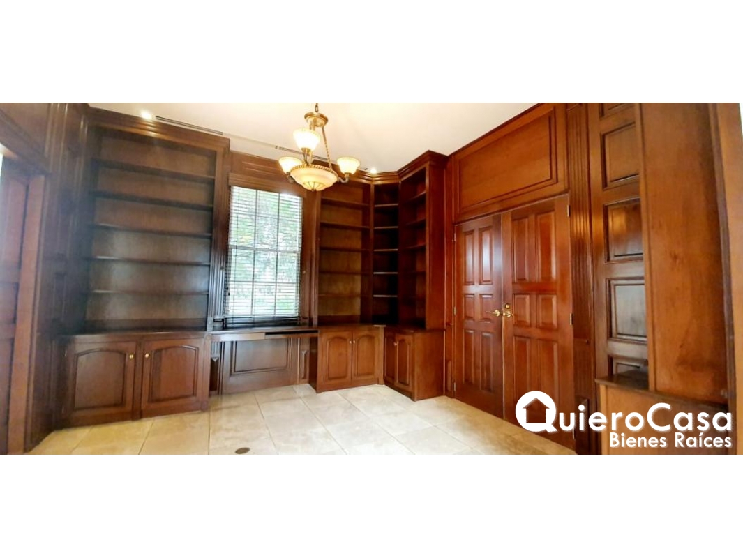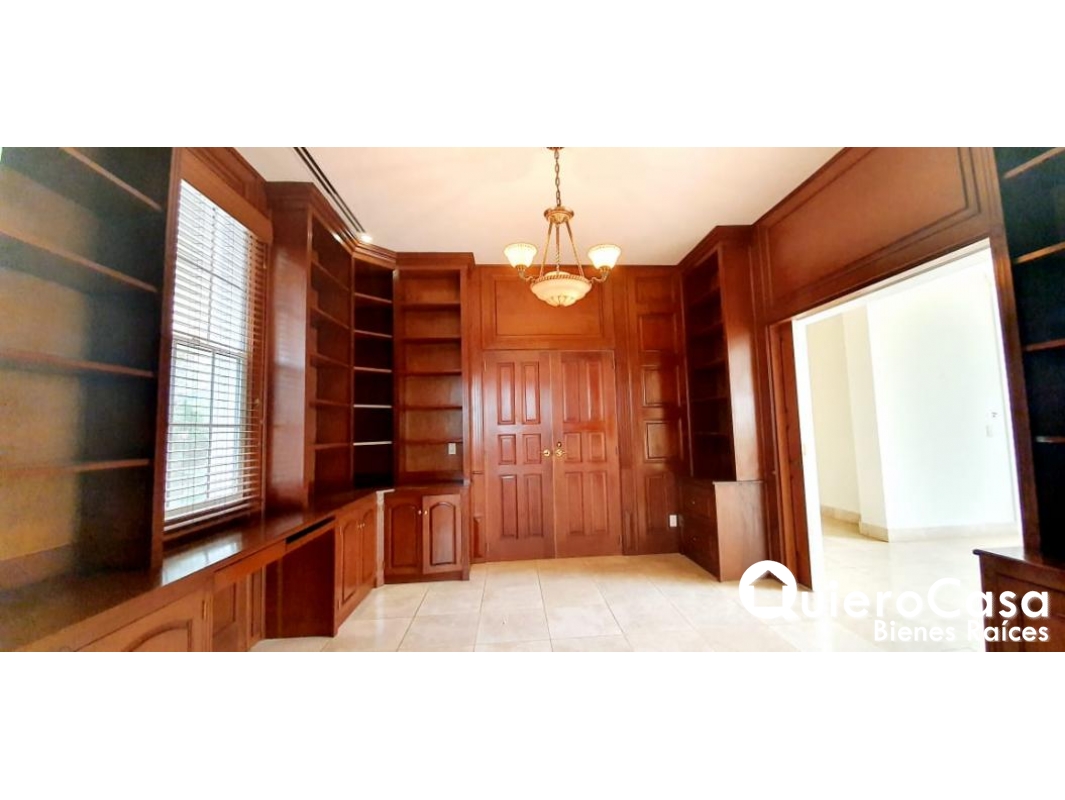 -oficina enchapada toda en madera caoba con molduras , pockets door que se comunican a la sala principal y a sala Bar