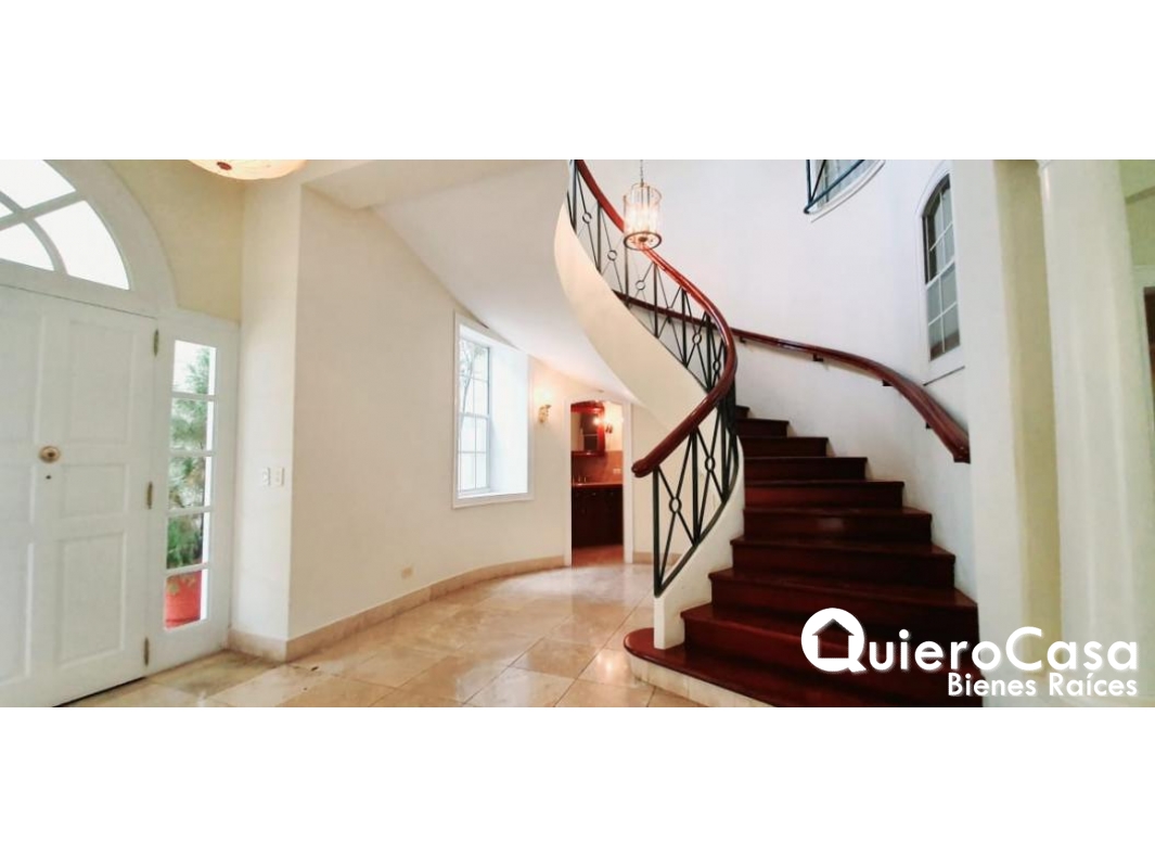 - cisterna del 10,000 galones con su bomba. Esta propiedad tiene las siguientes características: Sala, Comedor, Cocina, Área para Desayunador, Walk in Closet, Habitación de Servicio con su Baño, Lavandería Interna, Aire Acondicionado, Área Social, Patio, Piscina Propia.