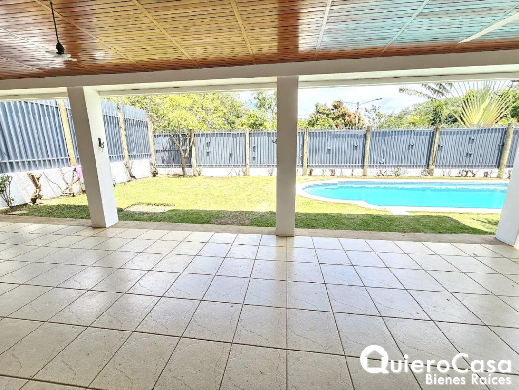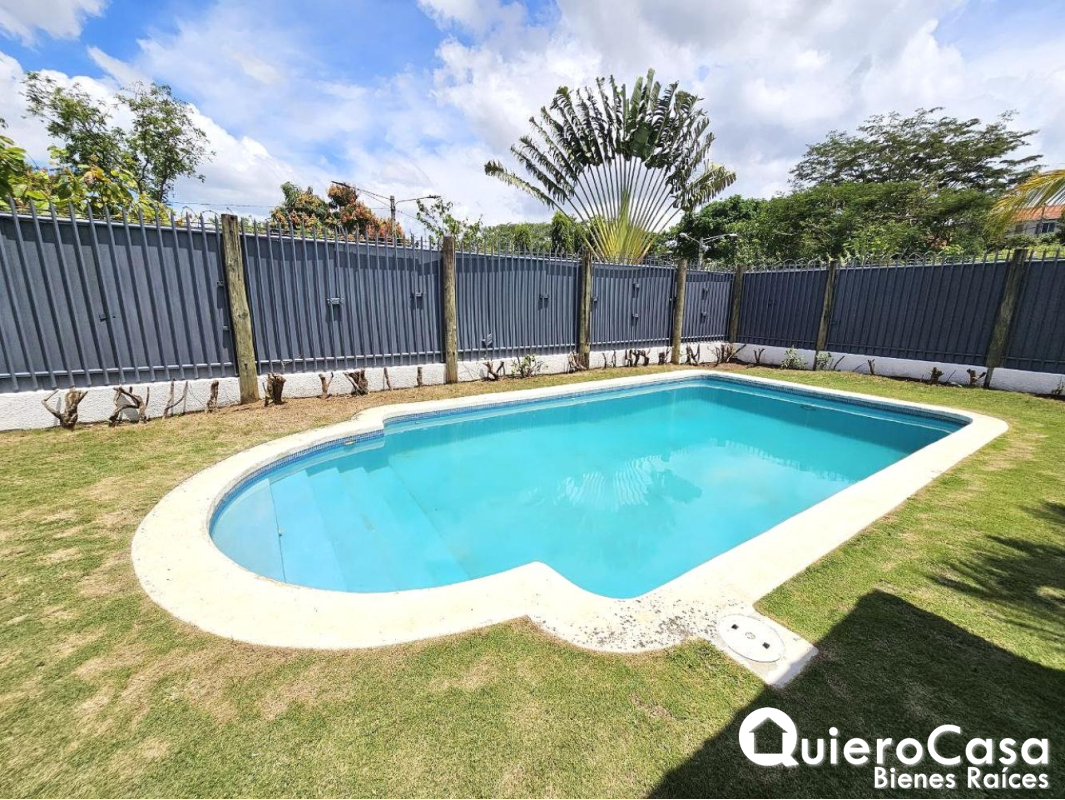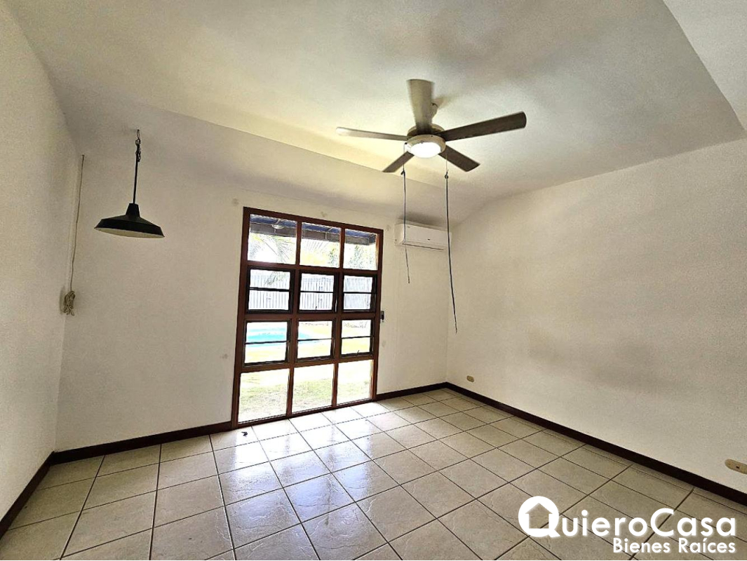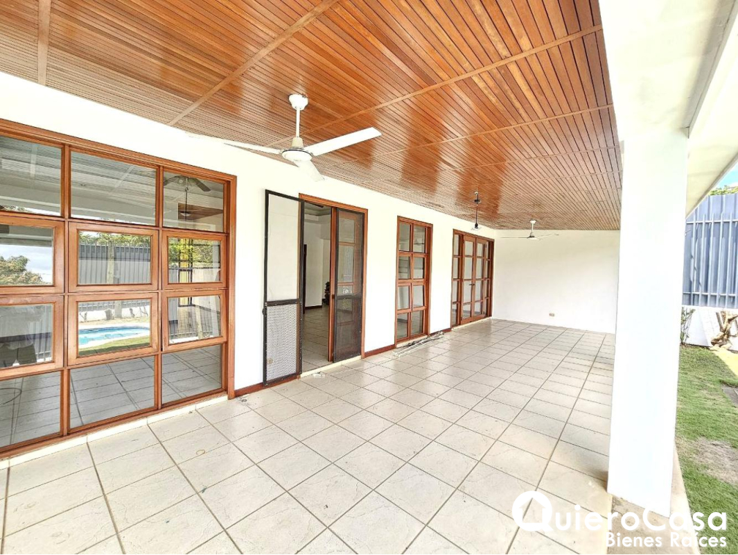 La propiedad cuenta con amplia terraza, piscina propia y abanicos de techo.