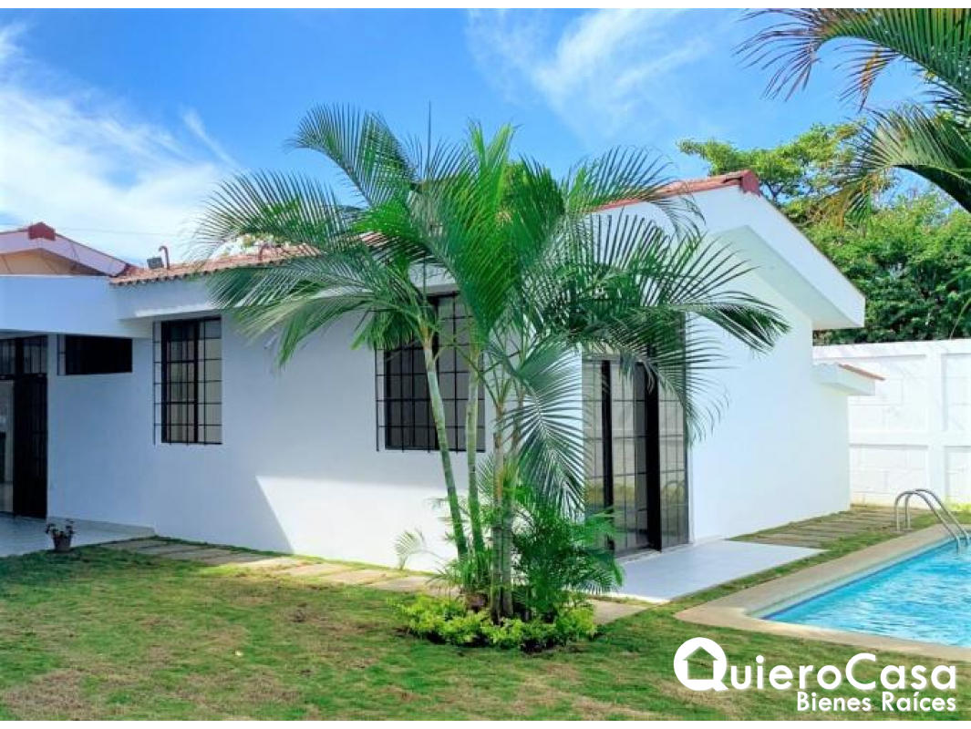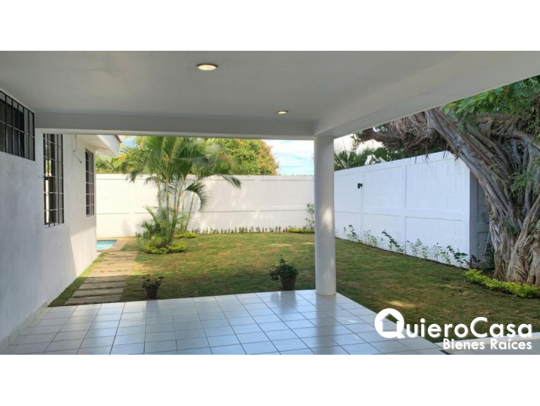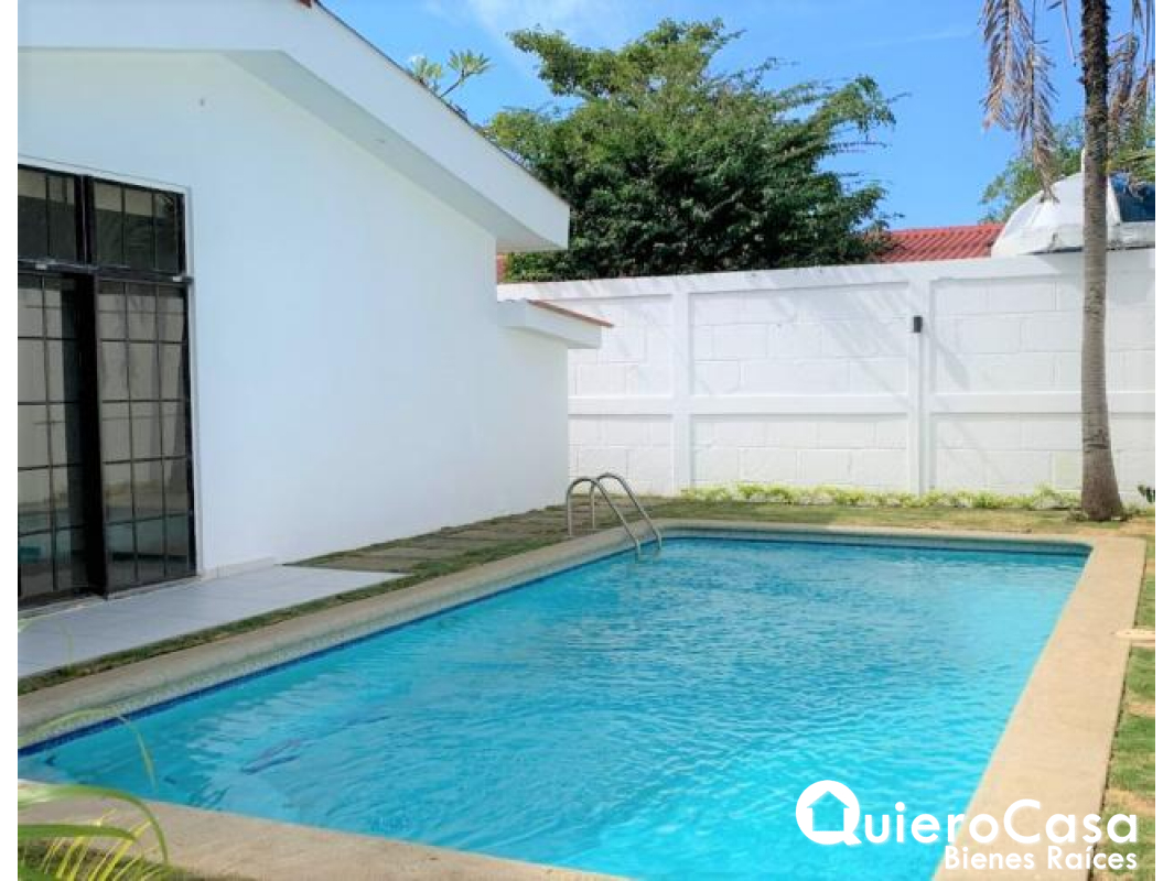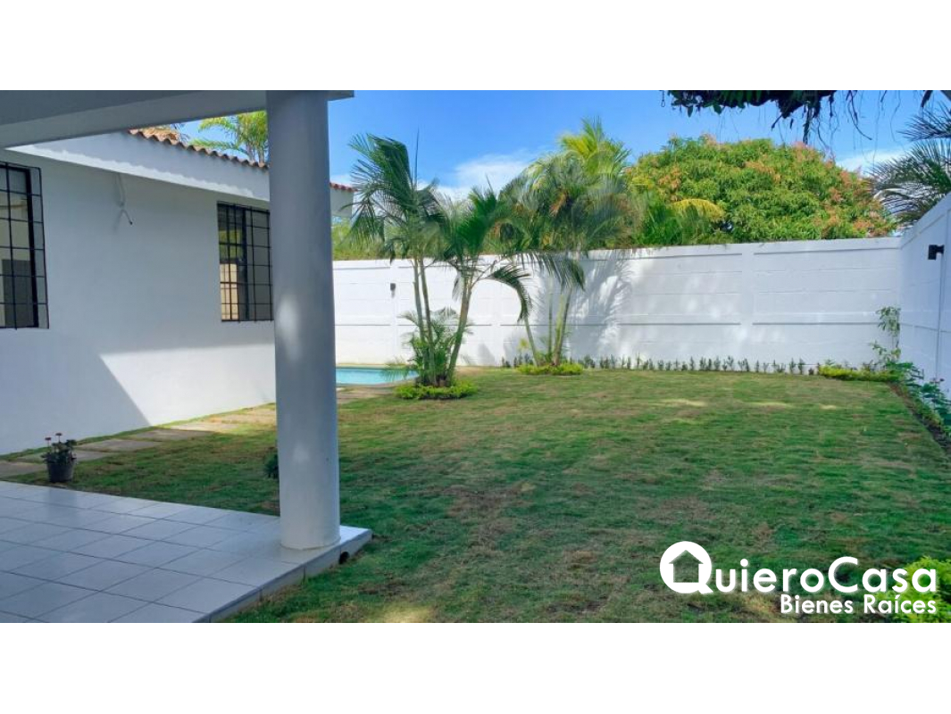 La propiedad cuenta con 1 bodega, alacena, 2 terrazas y un amplio jardín.. Esta propiedad tiene las siguientes características: Sala, Comedor, Cocina, Área para Desayunador, Habitación de Servicio con su Baño, Lavandería Interna, Aire Acondicionado, Patio, Piscina Propia.