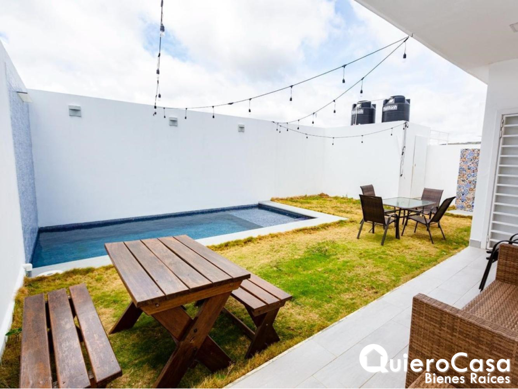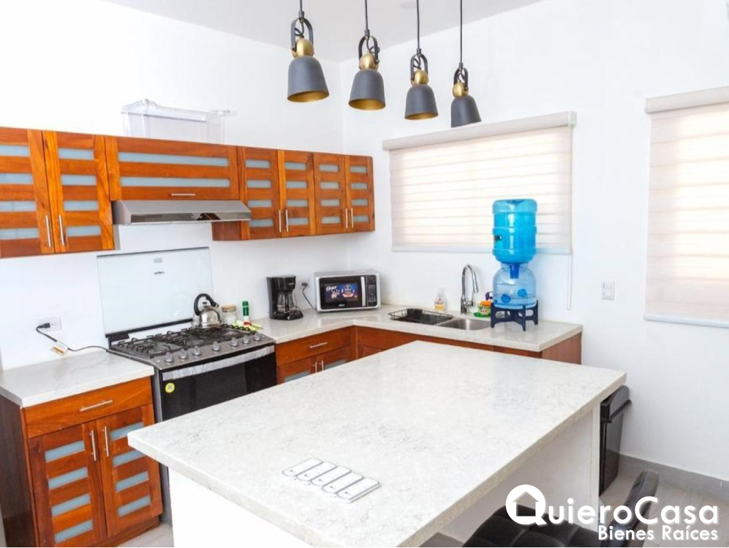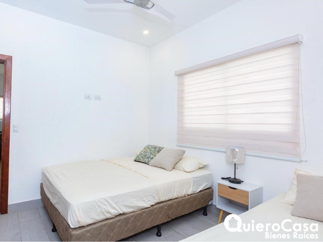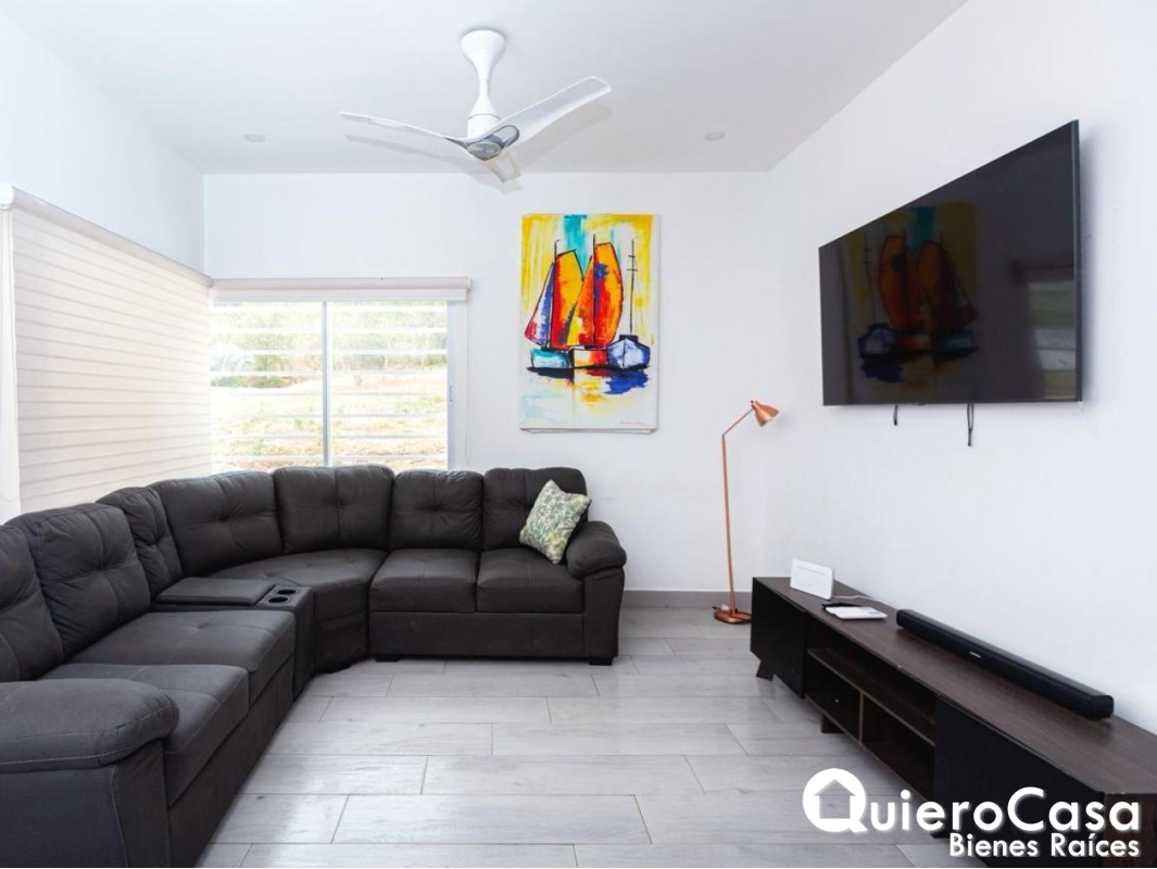 En su interior, ofrece una acogedora sala, comedor integrado y una cocina equipada, creando un ambiente cómodo y listo para disfrutar. Dispone de 3 habitaciones bien distribuidas y 2 baños completos, brindando comodidad para la familia o huéspedes.