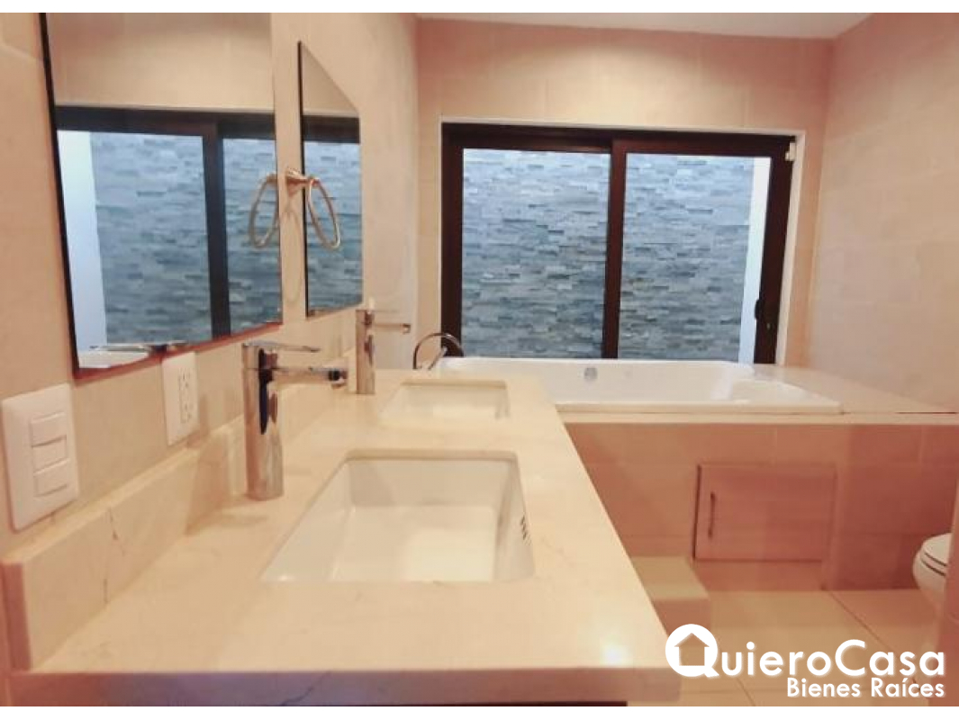 La propiedad cuenta con 2 estudios, 2 medios baños, jacuzzi y fuente.. Esta propiedad tiene las siguientes características: Sala, Comedor, Cocina, Área para Desayunador, Walk in Closet, Estudio, Lavandería Interna, Aire Acondicionado, Patio, Piscina Propia.