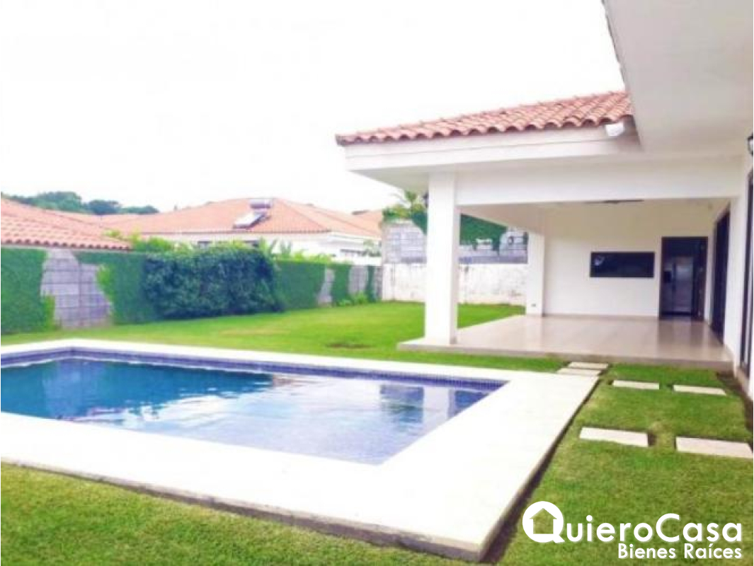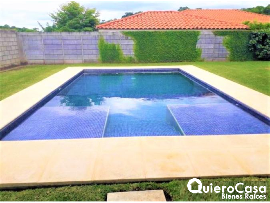 Hermosa casa disponible para venta en Santa Lucía, Santo Domingo, ubicada en condominio seguro y silencioso, de fácil acceso, cerca de centro de compras, escuelas, hospitales, gasolineras, restaurantes y bancos.. Esta propiedad tiene las siguientes características: Sala, Comedor, Cocina, Área para Desayunador, Walk in Closet, Habitación de Servicio con su Baño, Lavandería Interna, Garaje de Techado, Patio, Piscina Propia, Seguridad 24 Horas.