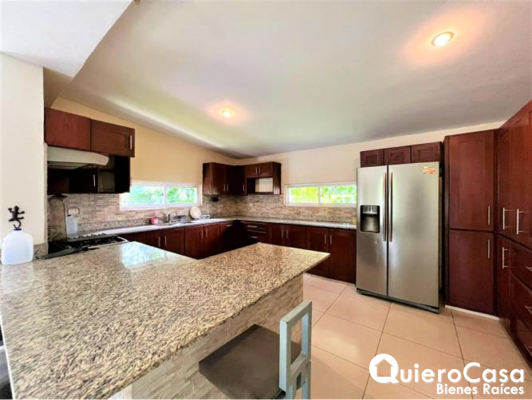 Su diseño de dos plantas cuenta con 4 habitaciones, 4.5 baños, vestíbulo, sala principal, sala familiar con área de bar, terraza, cocina, área de lavandería y tendedero, estacionamiento para 4 vehículos. El precio de renta incluye mantenimiento de jardín, cuota de condominio y seguridad, agua potable y mantenimientos en general de la propiedad.