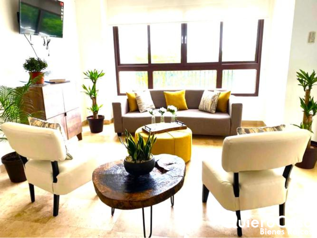 Precioso apartamento con estilo moderno, finos acabados, cómodas habitaciones, apropiada iluminación.¡Perfecto para mudarte! Ubicado en zona exclusiva, segura, silenciosa y de fácil acceso; a pocos minutos de centros comerciales, restaurantes, bancos, clínicas, farmacias, colegios, universidades y estaciones de servicios.. Esta propiedad tiene las siguientes características: Sala, Comedor, Cocina, Área para Desayunador, Habitación de Servicio con su Baño, Lavandería Interna, Aire Acondicionado, Seguridad 24 Horas.