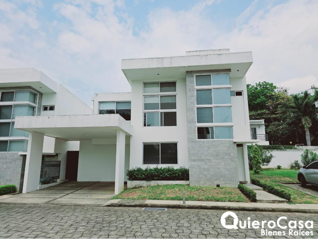 Se renta casa moderna fuera de condominio, ubicada en el exclusivo sector residencial de Santo Domingo, un área reconocida por su ambiente seguro, silencioso y familiar, con excelente acceso a las pr...