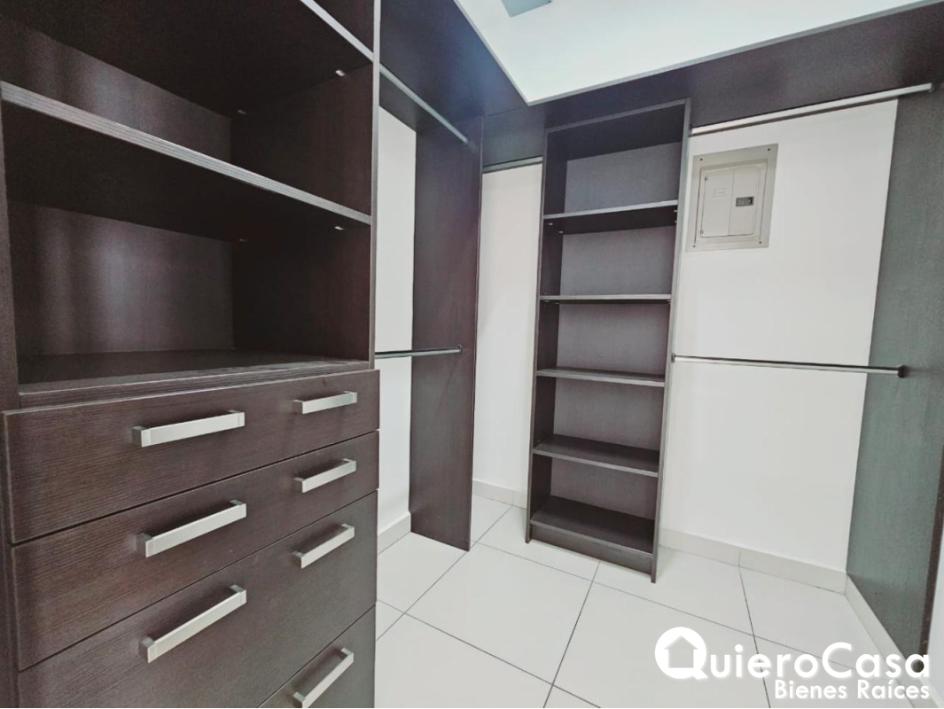 Esta propiedad tiene las siguientes características: Sala, Comedor, Cocina, Área para Desayunador, Balcón o Terraza, Walking Closet, Cuarto y Baño de Empleada, Aire Acondicionado, Agua Caliente, Tanque de Agua, Lavandería Interna, Garaje de Techado, En Condominio, Cerca de Escuela, Cerca de Hospitales, Seguridad 24 Horas, calentador de agua, 10 abanicos de techo,Cisterna subterránea de 1,000 litros, Espera de agua caliente en todos los baños, lavamanos y cocina.