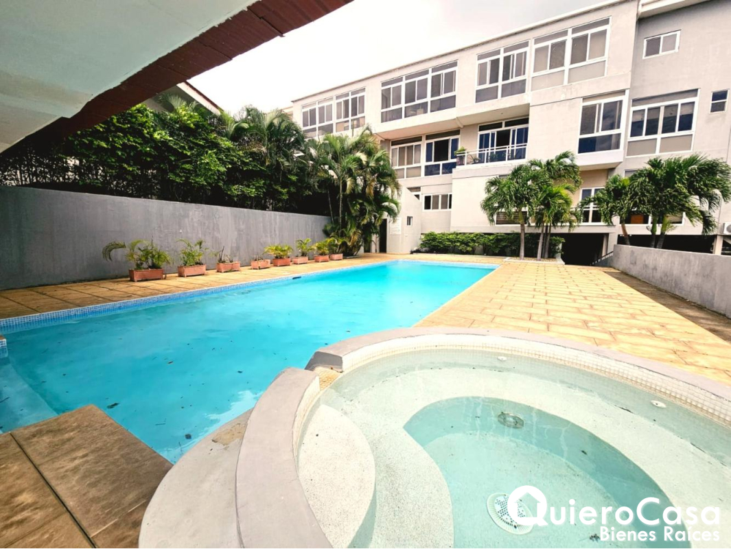 2Disfruta de un bonito y amplio espacio para tu familia, con habitaciones luminosas y cómodas, donde encontraras tu rincón de paz. La cocina moderna y funcional te invita a crear deliciosas comidas y a disfrutar de ellas. Ubicación céntrica y segura, de fácil acceso, cerca de comercios, restaurantes y bancos.. Esta propiedad tiene las siguientes características: Sala, Comedor, Cocina, Área para Desayunador, Lavandería Interna, Aire Acondicionado, Piscina Comunal, Seguridad 24 Horas.