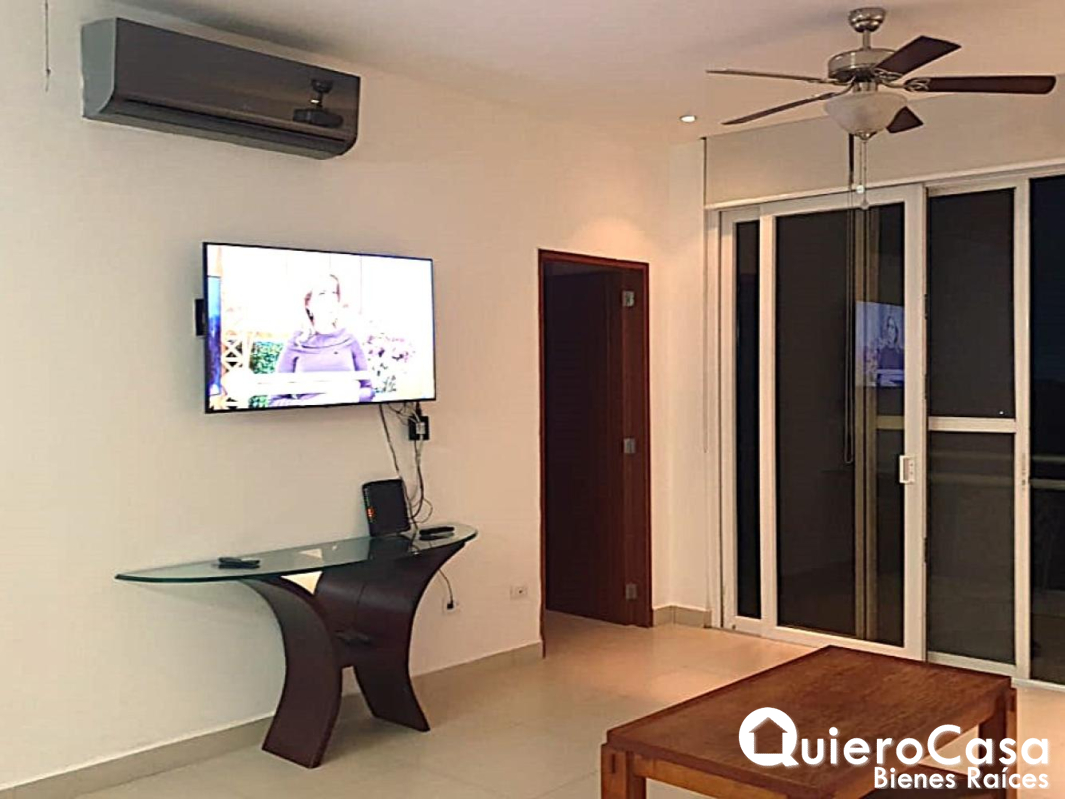 Balcón con Vista al Lago: Perfecto para relajarte y disfrutar de paisajes únicos desde la comodidad de tu hogar, totalmente amueblado, área de lavandería equipada con lavadora y secadora, cocina de lujo equipada con Refrigeradora 3 puertas de 36?, lava plato automático, cocina con horno eléctrica, microwave sobre cocina con extractor, luces directas e indirectas, wine cooler, counter bar con sus sillas, Aire acondicionados, televisiones de pantalla y abanicos de techo en todos los ambientes, internet y cable TV gratis, seguridad, 1 estacionamiento privado bajo techo, etc, precio $1,650 de alquiler y $50 adicionales de cuota fija por suministro ilimitado de agua; mantenimiento, acceso a piscina y gimnasio gratis.