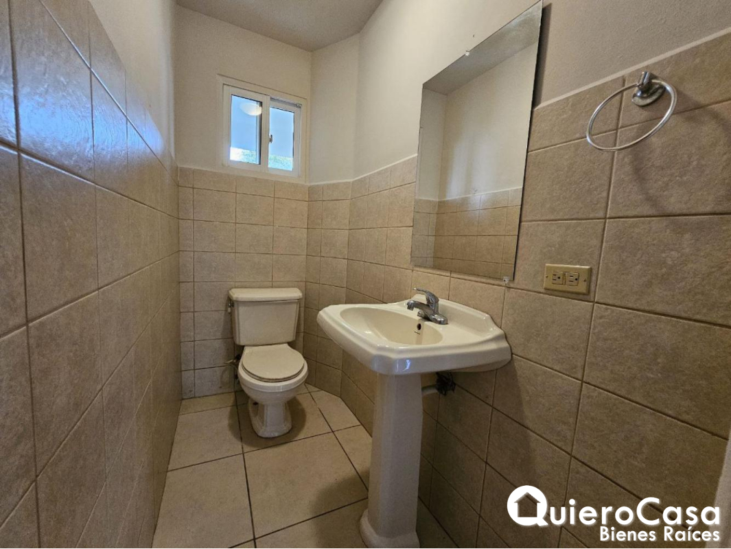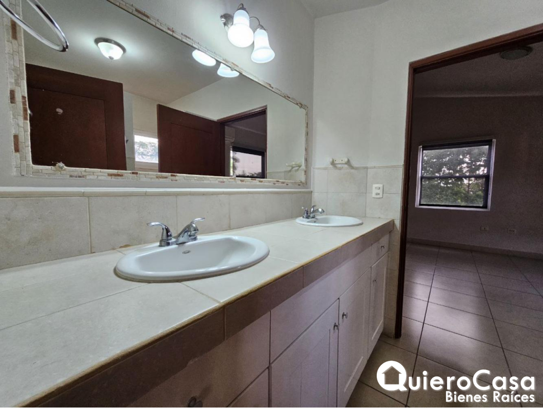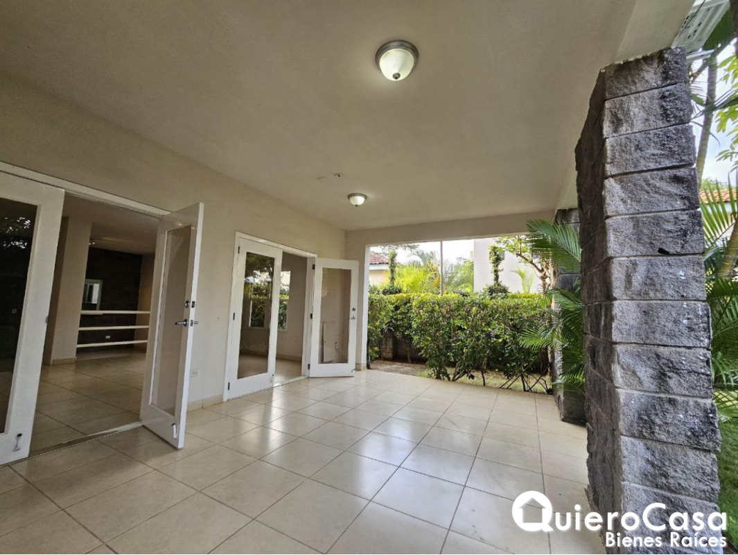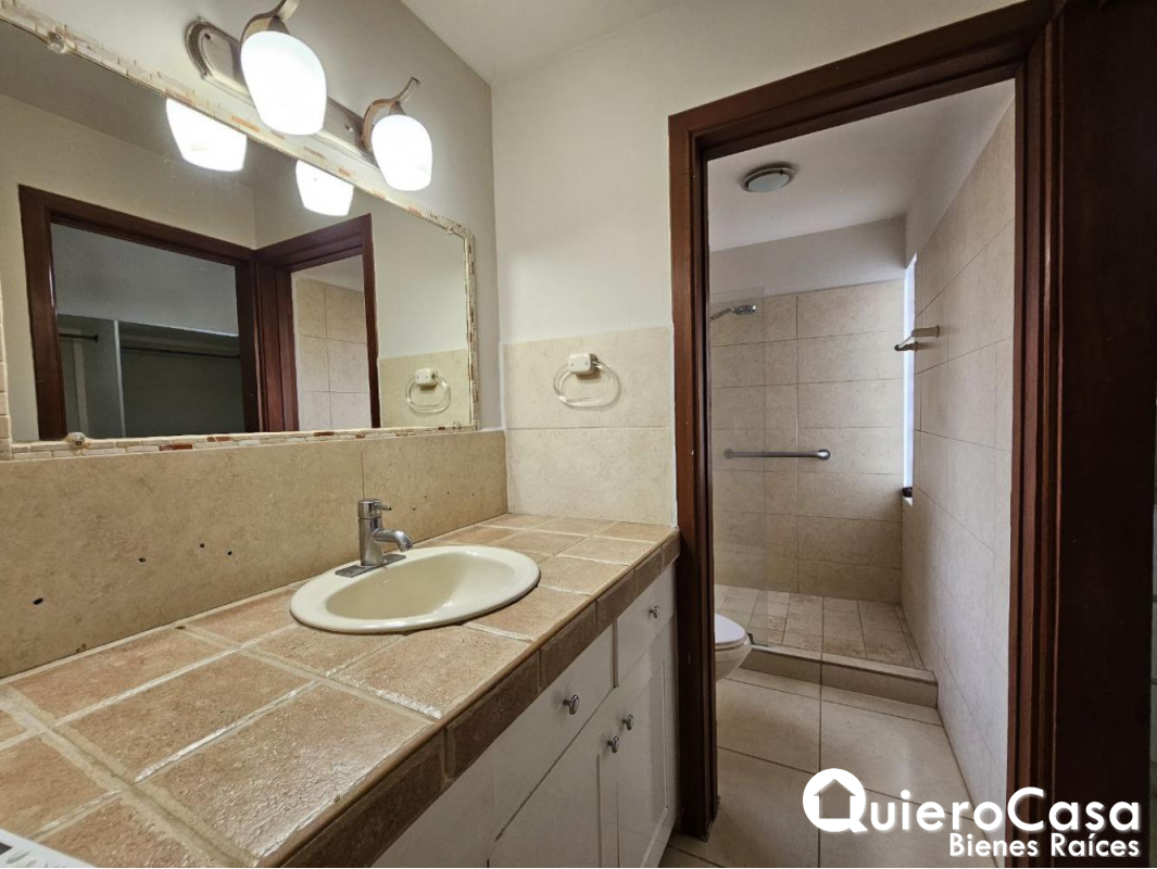 Casa estilo de dos plantas, consta de 3 dormitorios, 2 baños, 1 baño de visitas, dormitorio de servicio con su baño, amplia sala, área de comedor, cocina, terraza, patio, estacionamiento para 3 vehículos y seguridad las 24 horas.