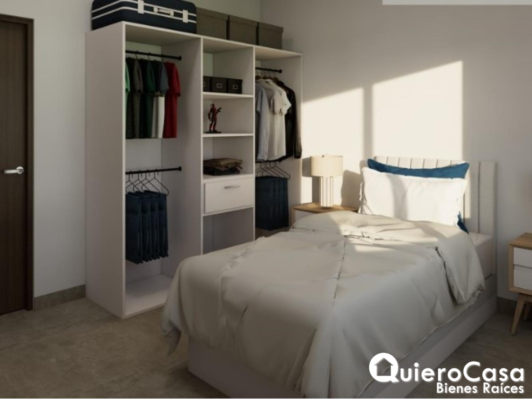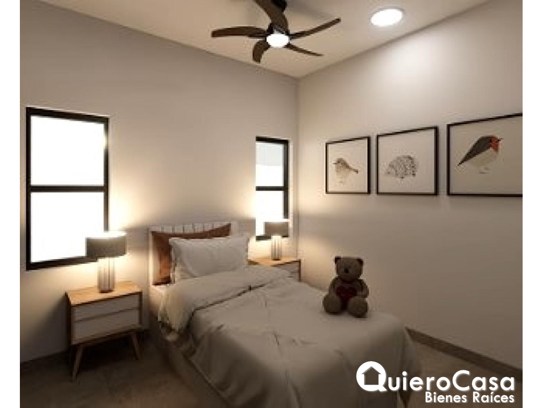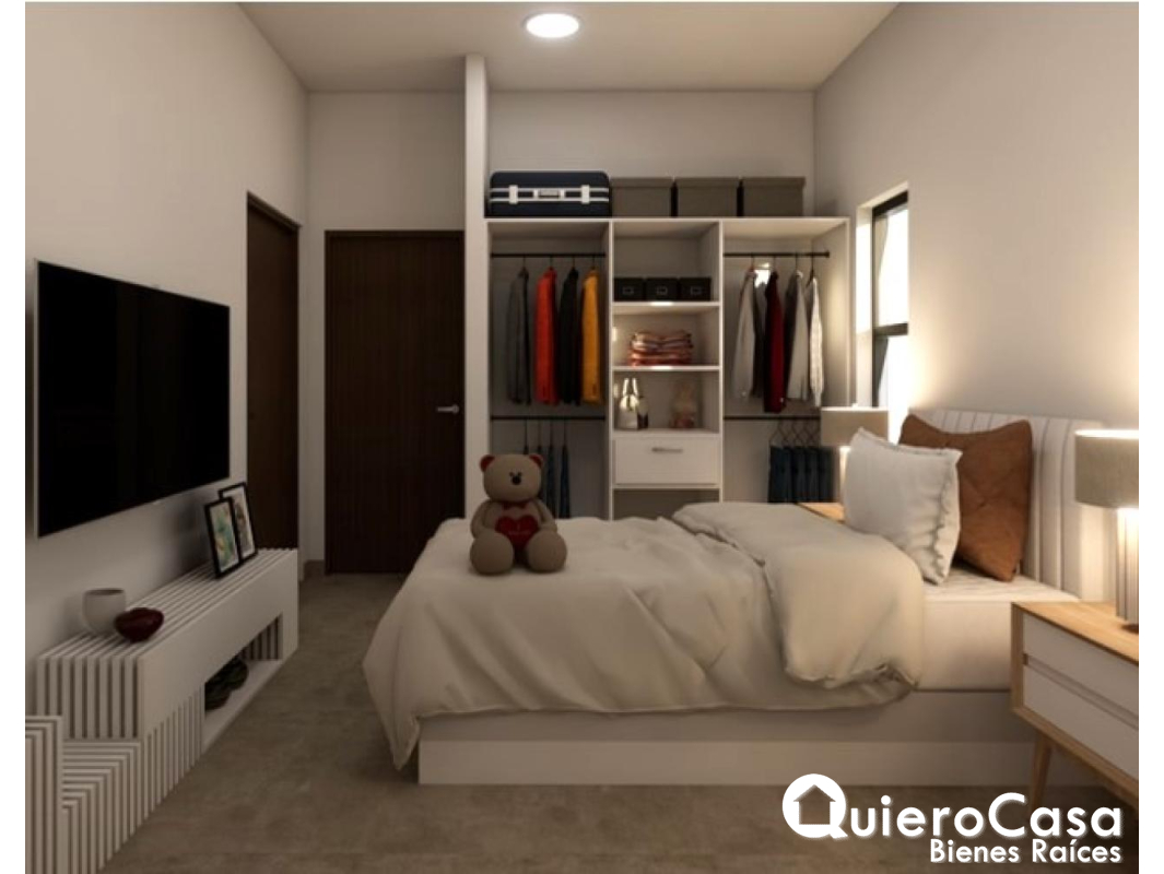 En el área privada, la casa ofrece dormitorio principal con dos walking closet y baño principal, además de dos dormitorios secundarios, cada uno con su baño propio, garantizando comodidad e independencia.