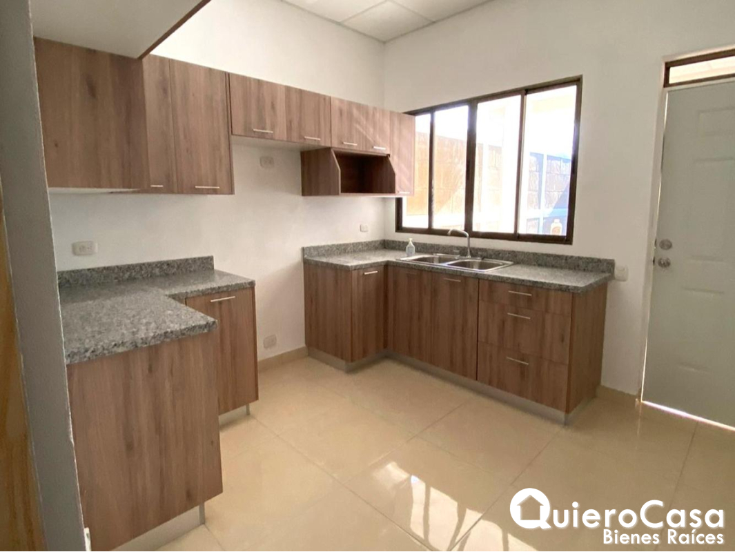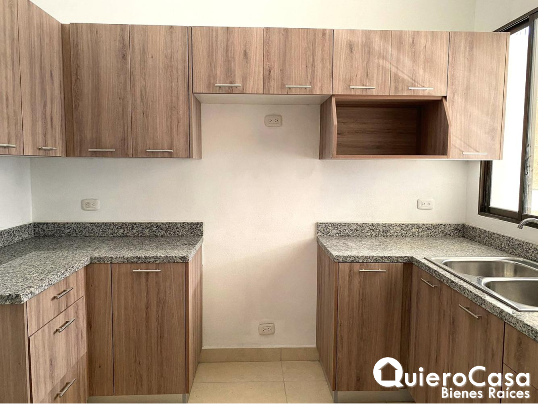 La cocina está diseñada para el día a día, equipada con gabinetes superiores e inferiores, pantry y top de granito, ofreciendo funcionalidad y excelente presentación.