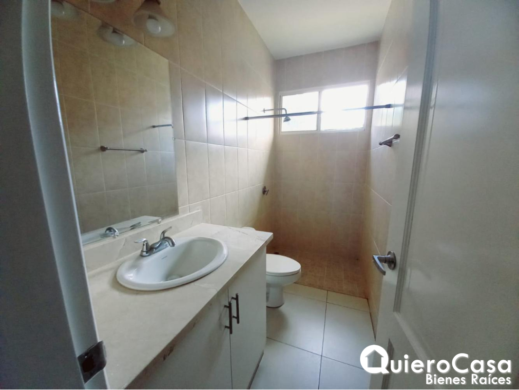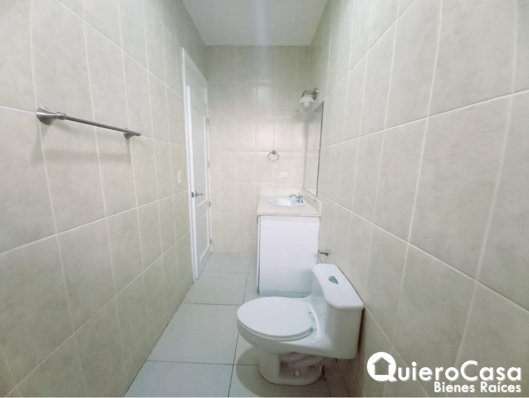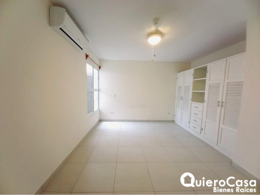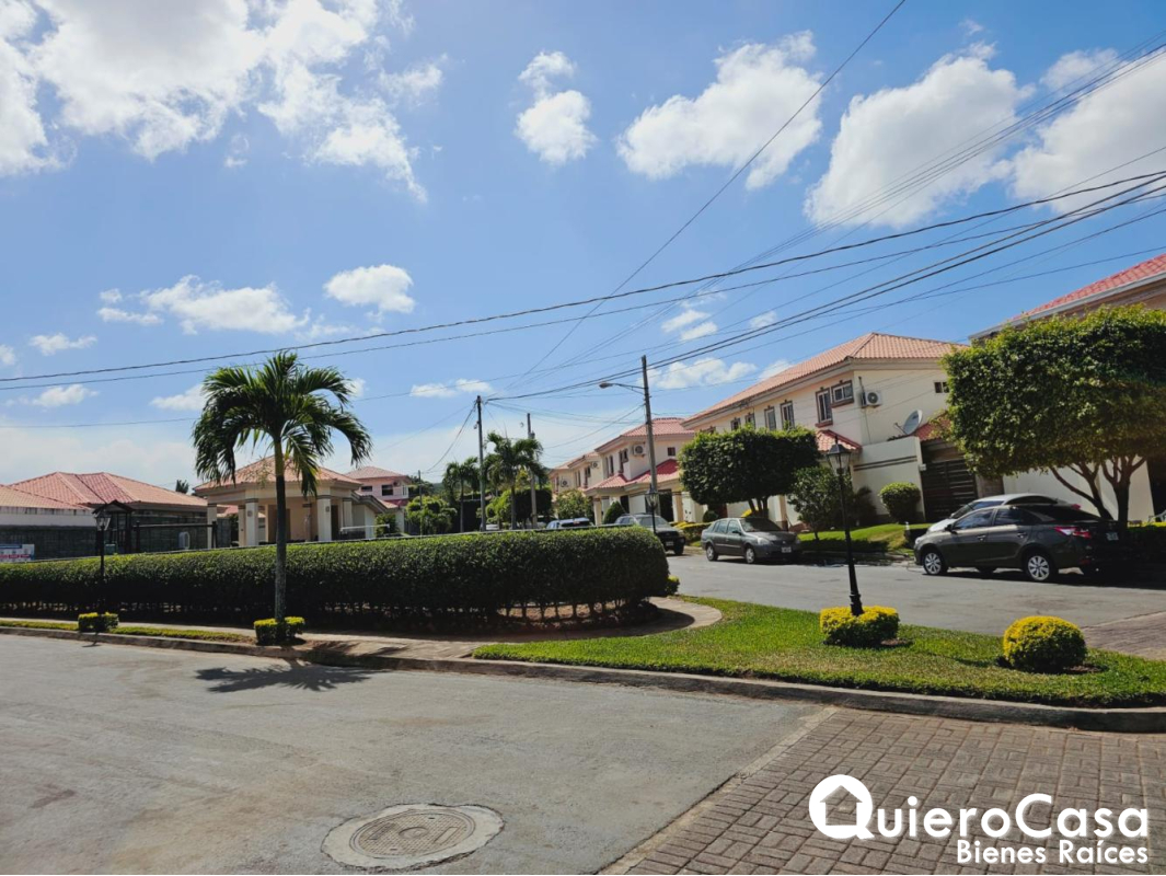 2Hermosa casa de una planta en renta dentro de condominio seguro, centrico y silenicioso de facil acceso cerca de supermercados, escuelas, hospitales, bancos y estaciones de servicio. La casa posee terraza ampliada con baño de visita, habitación principal ampliada, 2 habitaciones secundarias con baño compartido, todas las habitaciones poseen aire acondicionado.. Esta propiedad tiene las siguientes características: Sala, Comedor, Cocina, Aire Acondicionado, Área Social, Piscina Comunal.