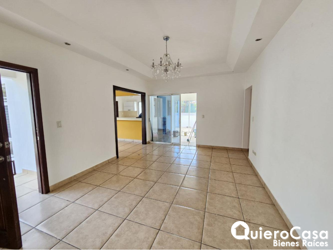 La propiedad cuenta con una sala amplia y luminosa, perfecta para compartir momentos especiales en familia, además de un comedor espacioso que se integra armoniosamente con la vivienda. Su cocina funcional brinda comodidad y buena distribución para el día a día.