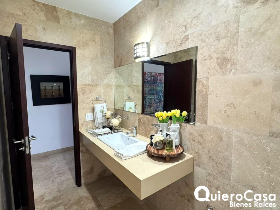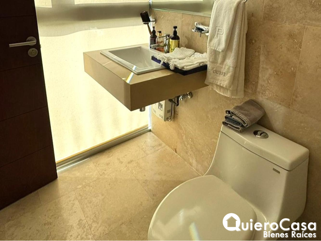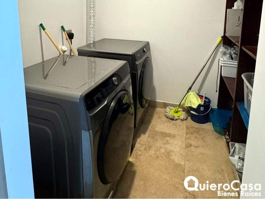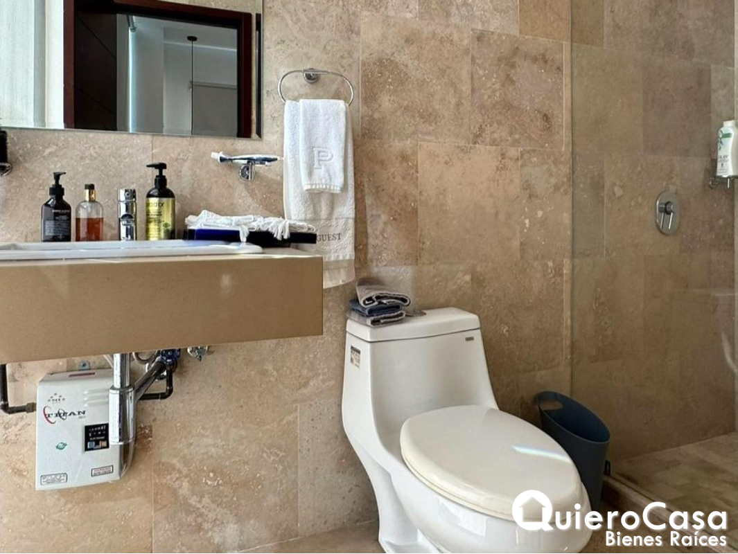 El apartamento dispone de 1 baño de visitas, además de 3 cómodas habitaciones, cada una con su baño privado, proporcionando mayor comodidad y privacidad. También cuenta con habitación y baño de servicio, así como área de lavandería independiente para mayor practicidad en las labores del hogar.