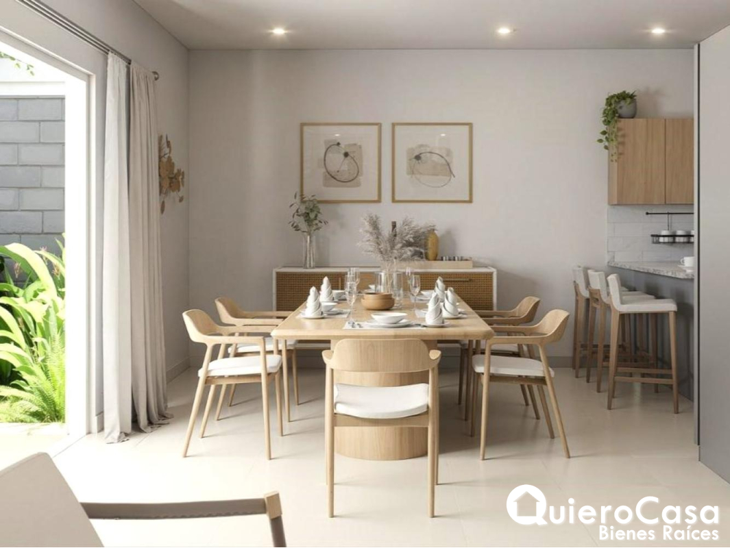 La casa cuenta con una sala acogedora, comedor y una cocina bien distribuida, creando un ambiente ideal para la convivencia familiar.